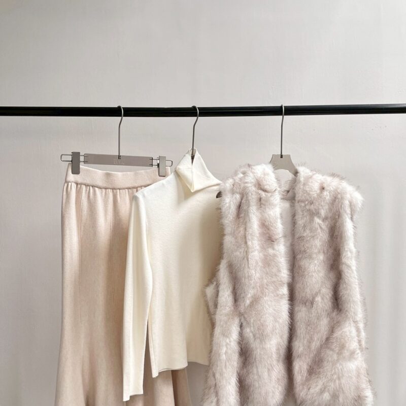 毛毛背心傘裙三件套