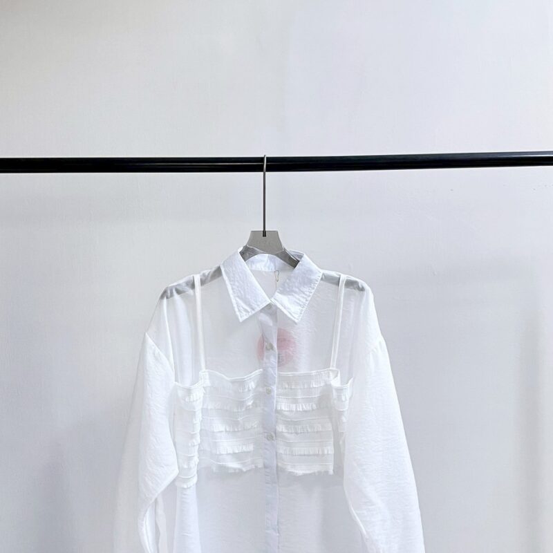 韓系假兩件透膚襯衫