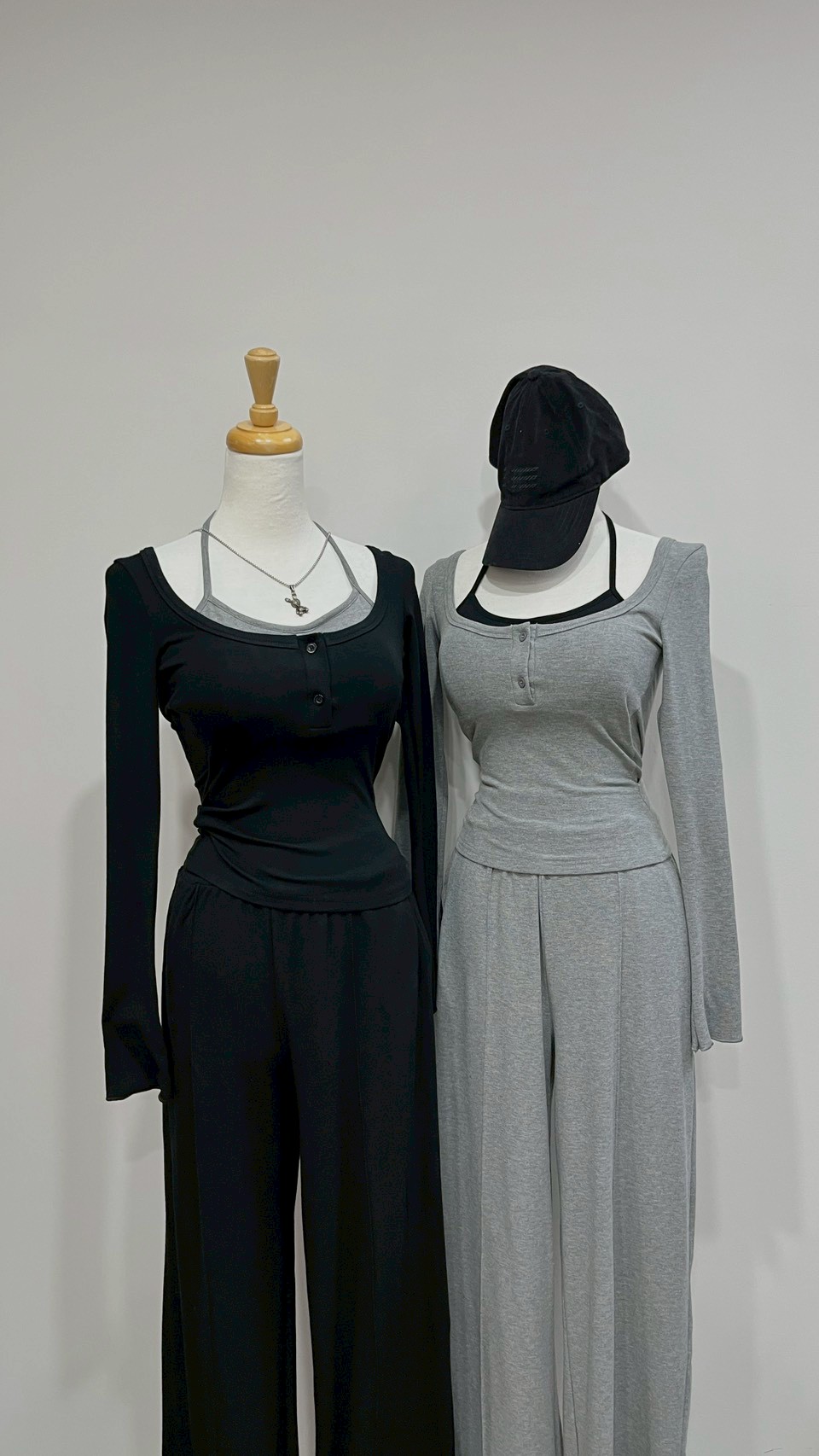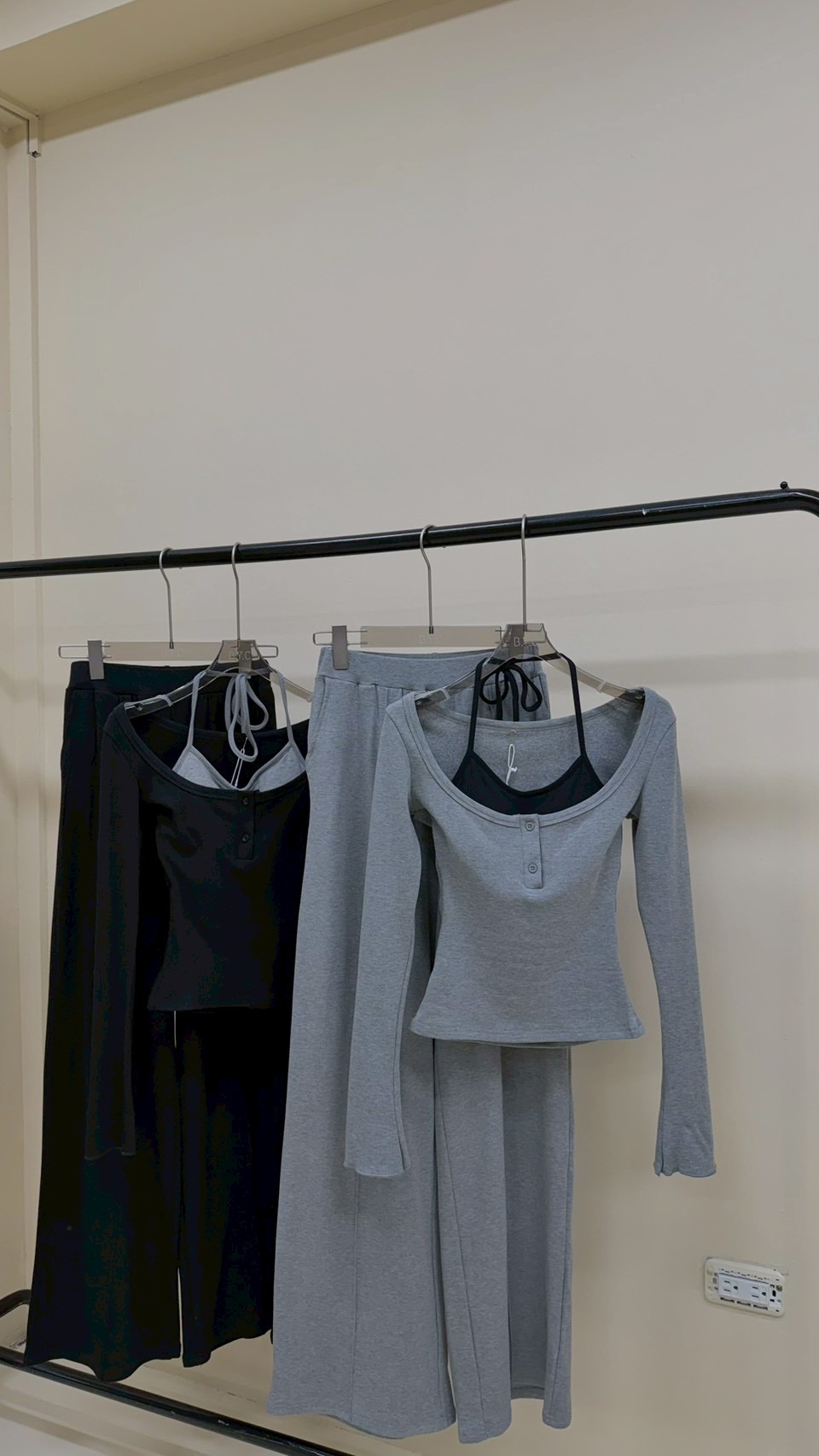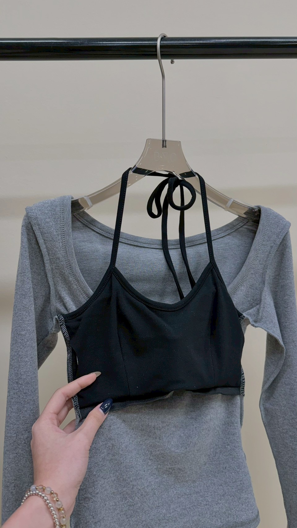 「假兩件」設計直接幫妳搭好!利用撞色細包邊與雙肩帶疊加,視覺上高度修飾肩頸與鎖骨線條,率性中帶點叛逆性感。 Color : 黑 / 灰 Size : Free