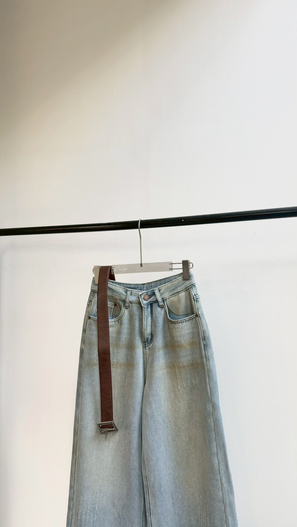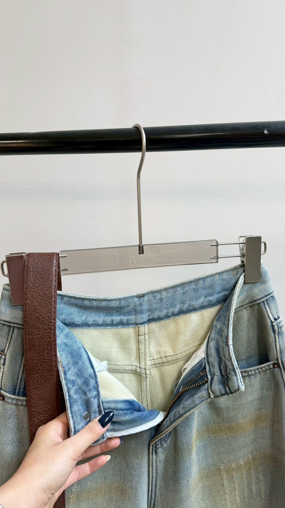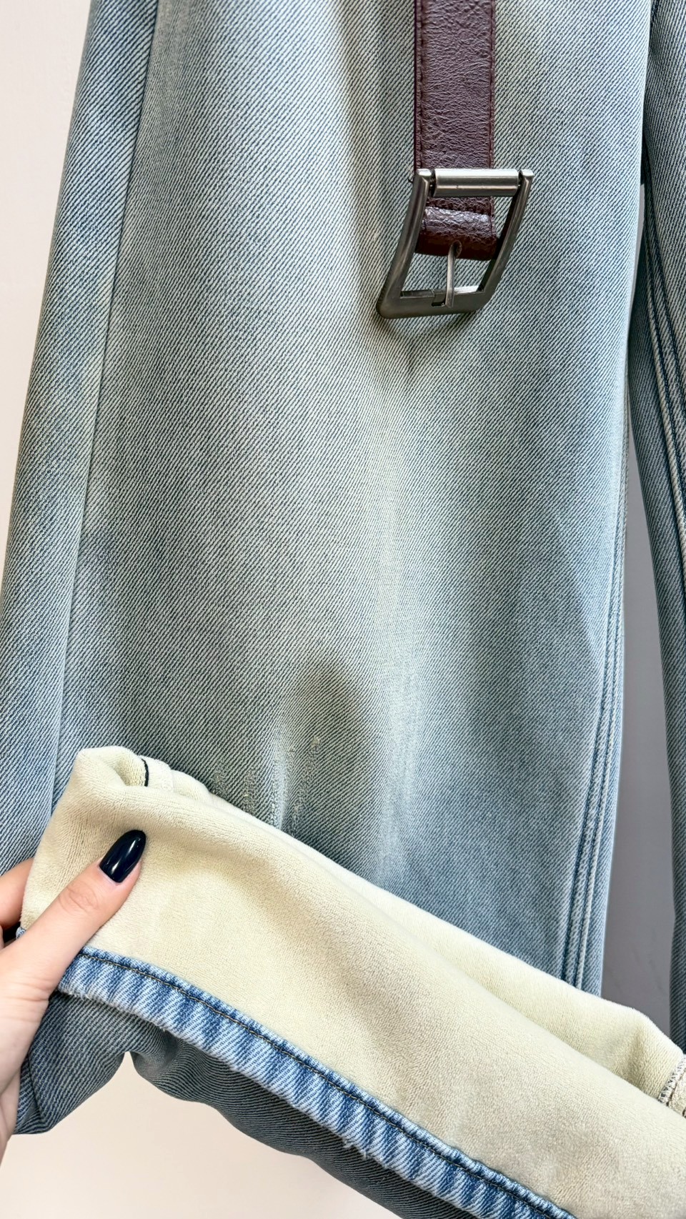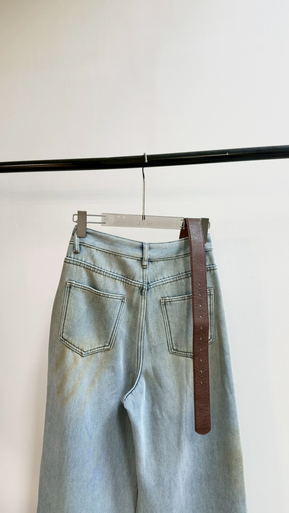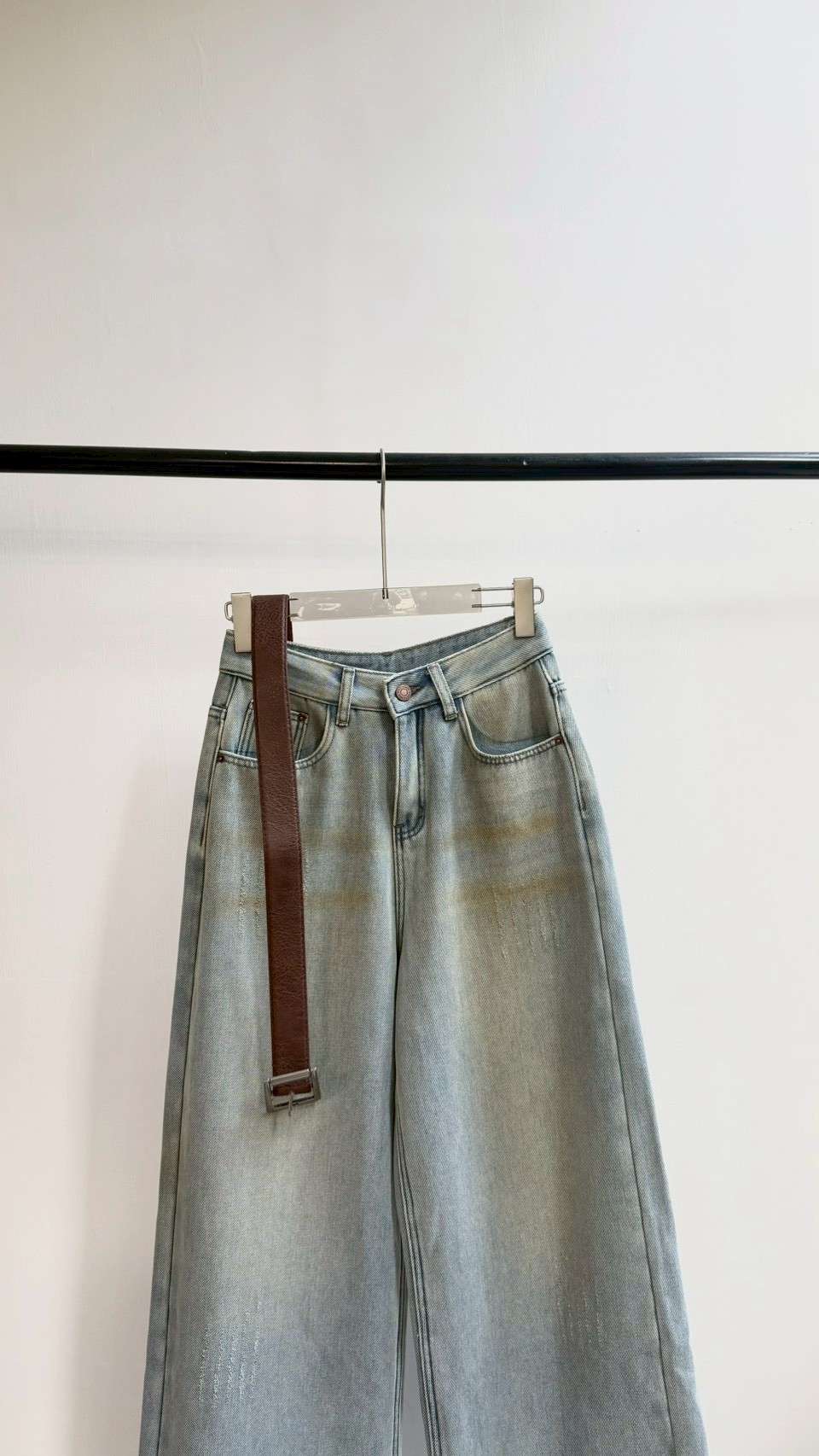 復古刷毛工藝帶出懷舊質感,搭配帥氣直筒寬版剪裁與隨附皮帶,輕鬆穿出充滿個性的時髦氣場。 Color:藍 Size : S / M / L / XL