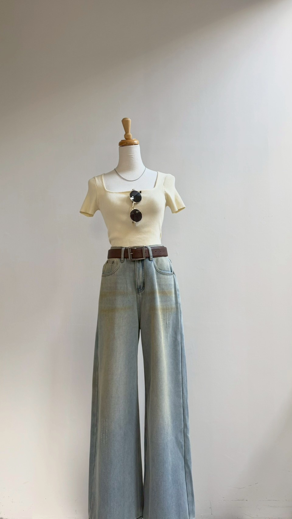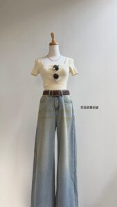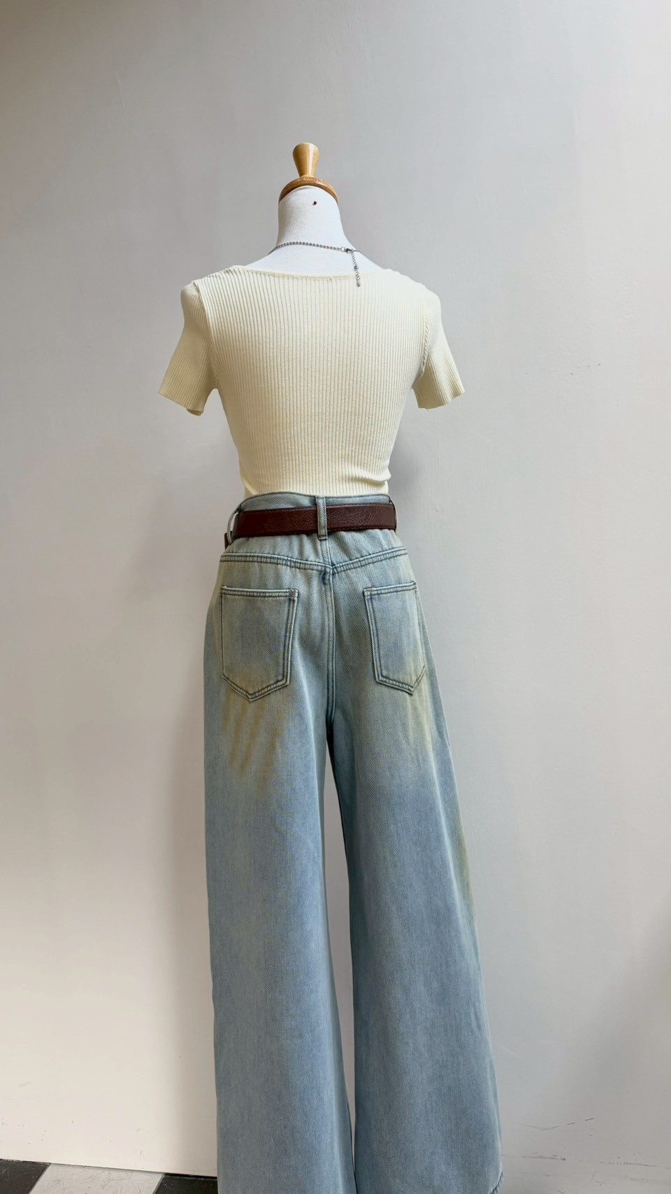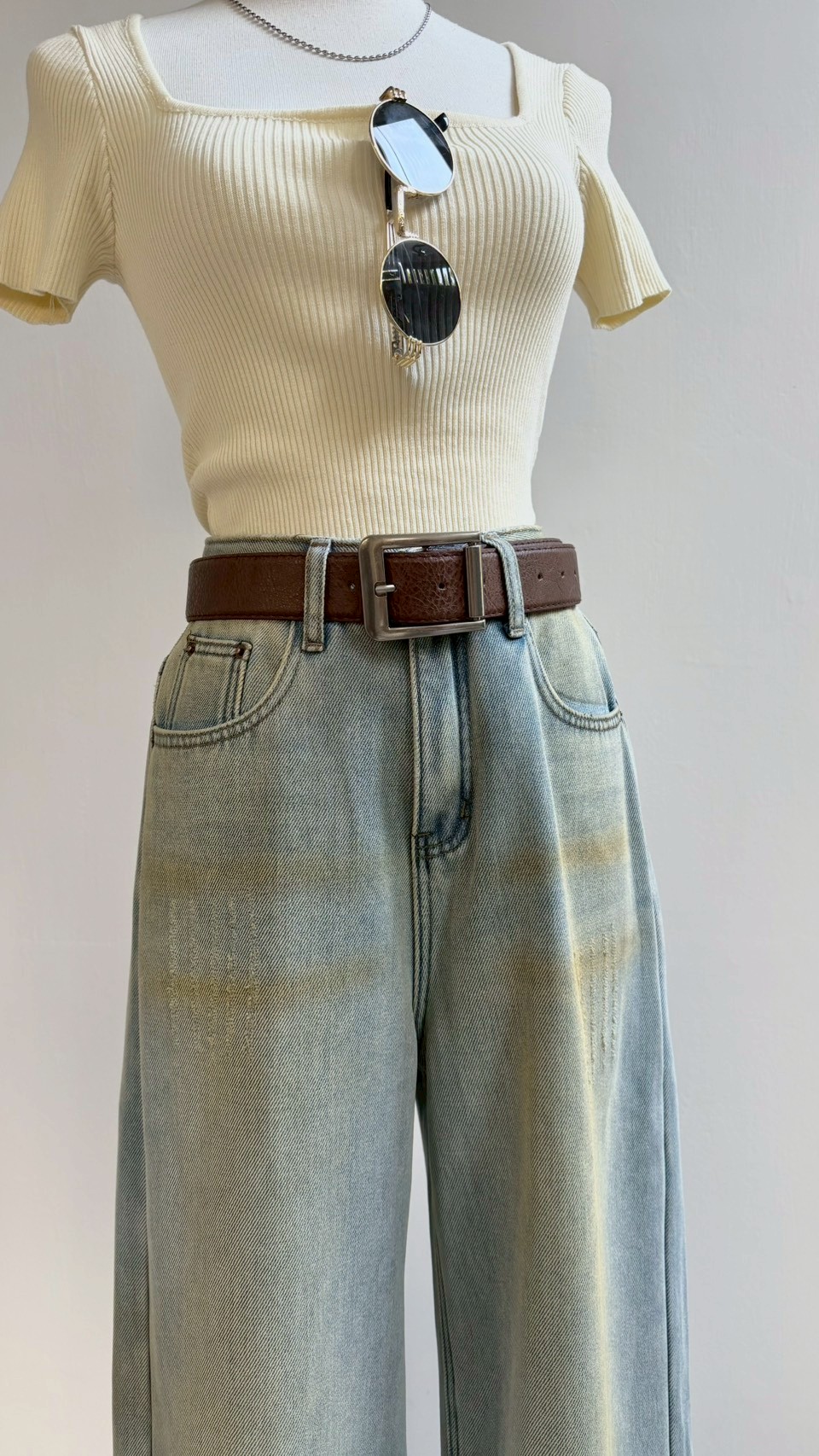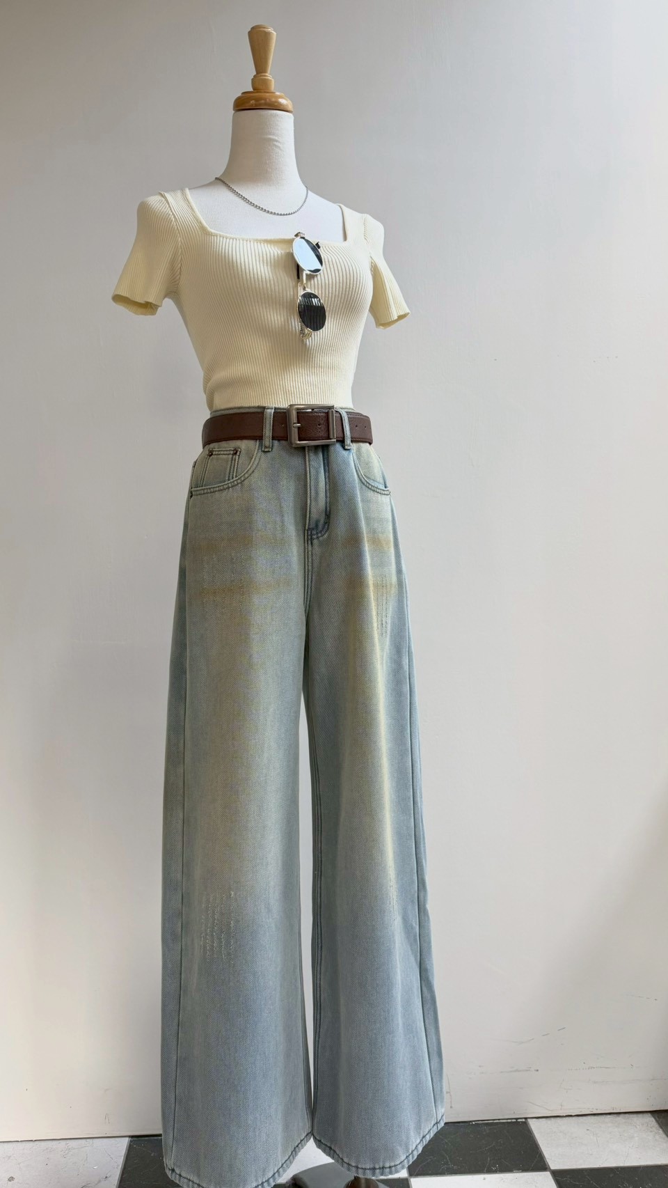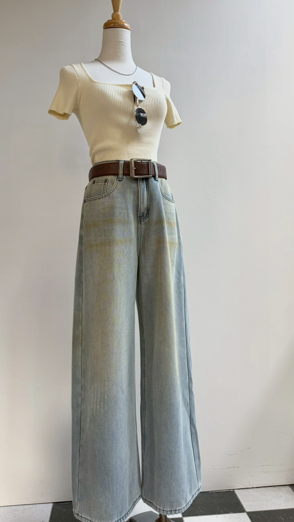 復古刷毛工藝帶出懷舊質感,搭配帥氣直筒寬版剪裁與隨附皮帶,輕鬆穿出充滿個性的時髦氣場。 Color:藍 Size : S / M / L / XL