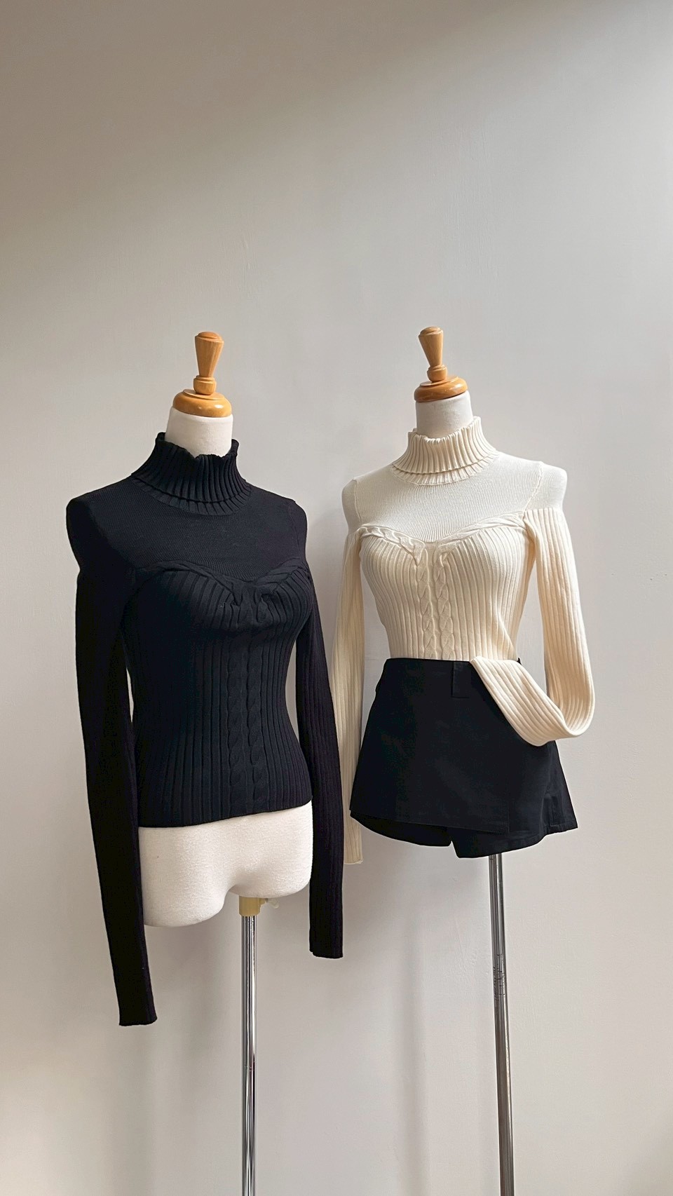 辣度爆棚!心機麻花織紋 + 修身針織上衣 {彈性坑條針織面料} 完美貼合身形 展現你的S曲線~~~ Color:黑 / 白 Size : Free