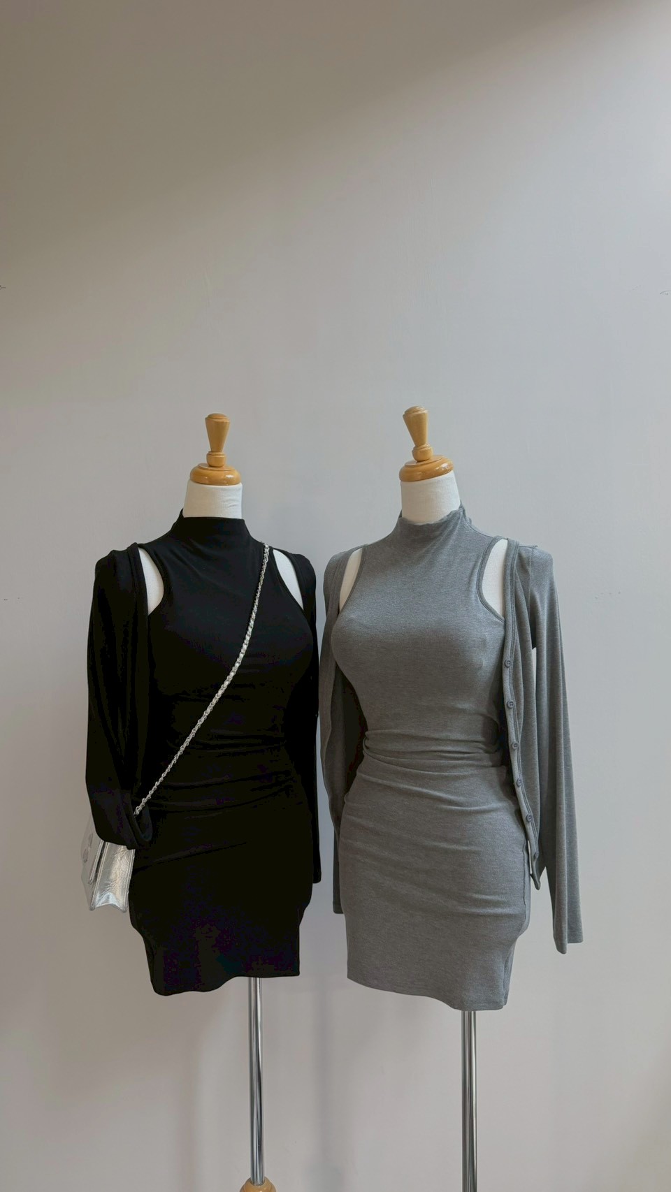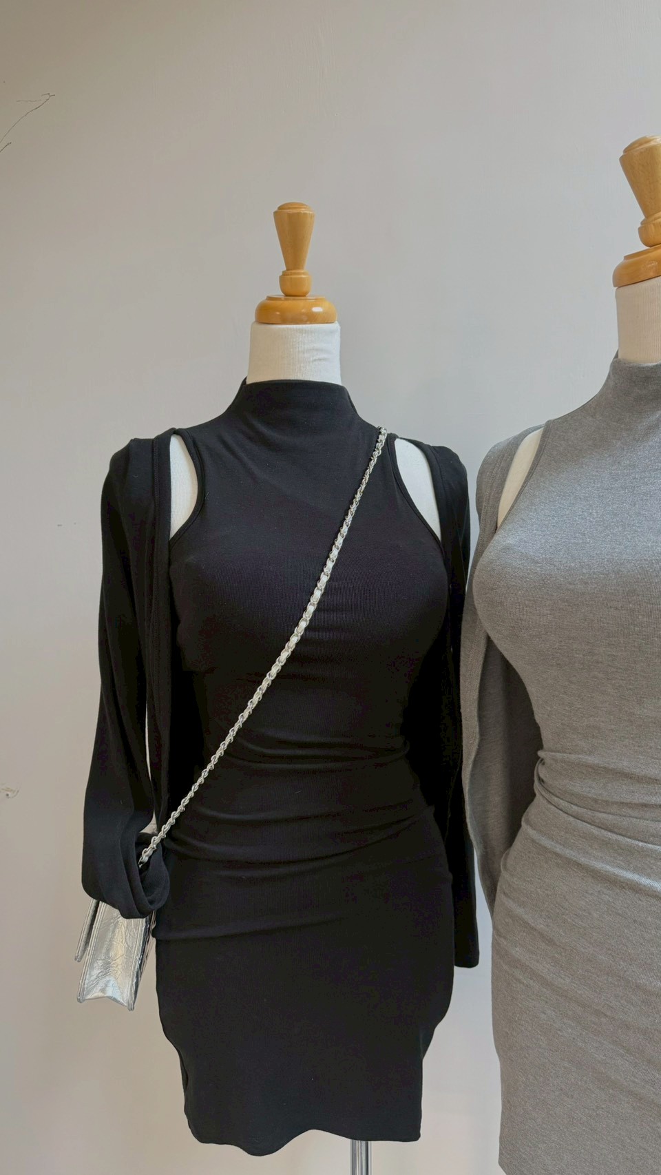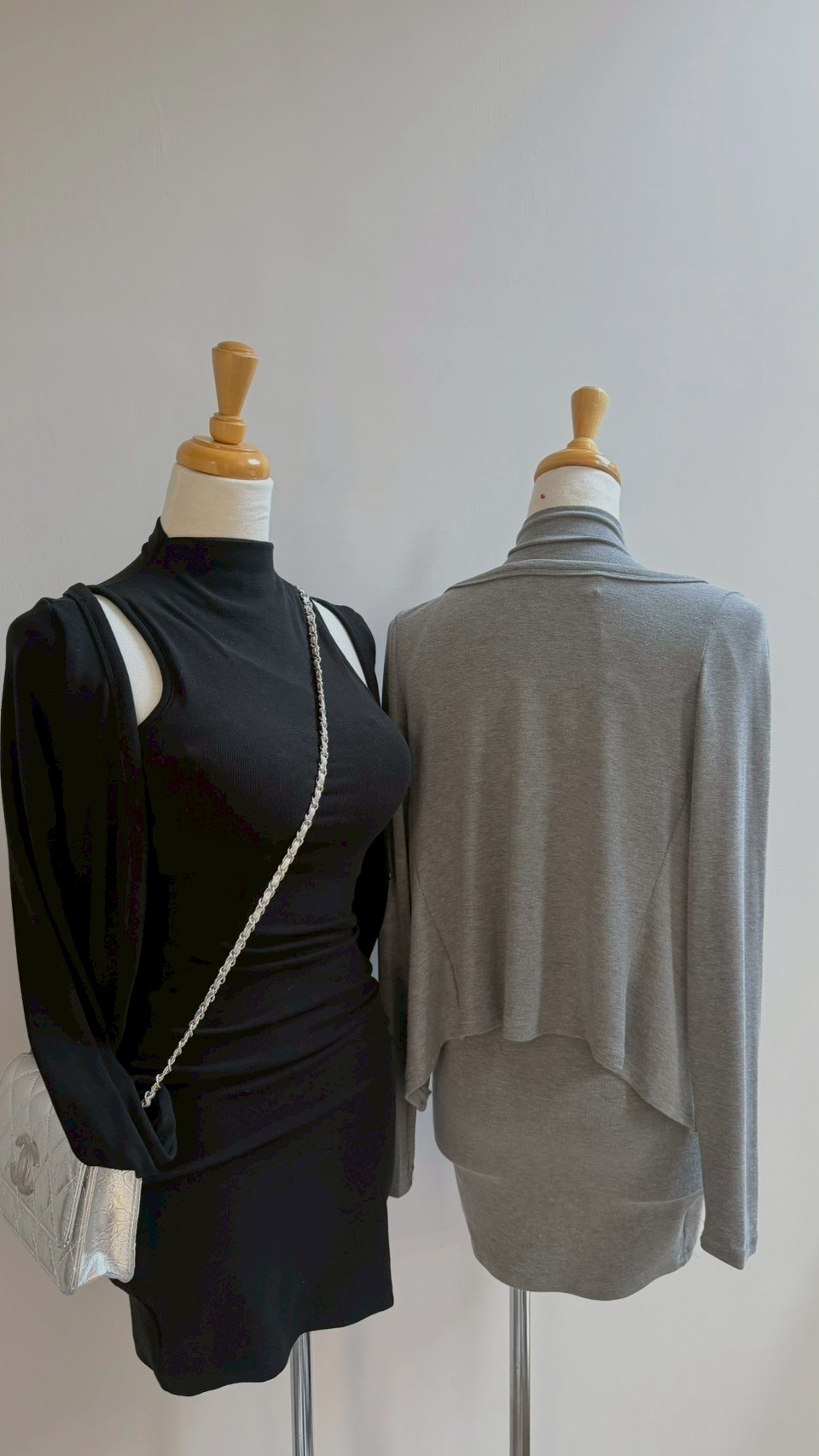 合身顯瘦不顯肉 ✨ 高領設計大氣又知性,單穿就很高級~ 搭上小外套更顯氣質! Color : 灰 / 黑 Size : Free