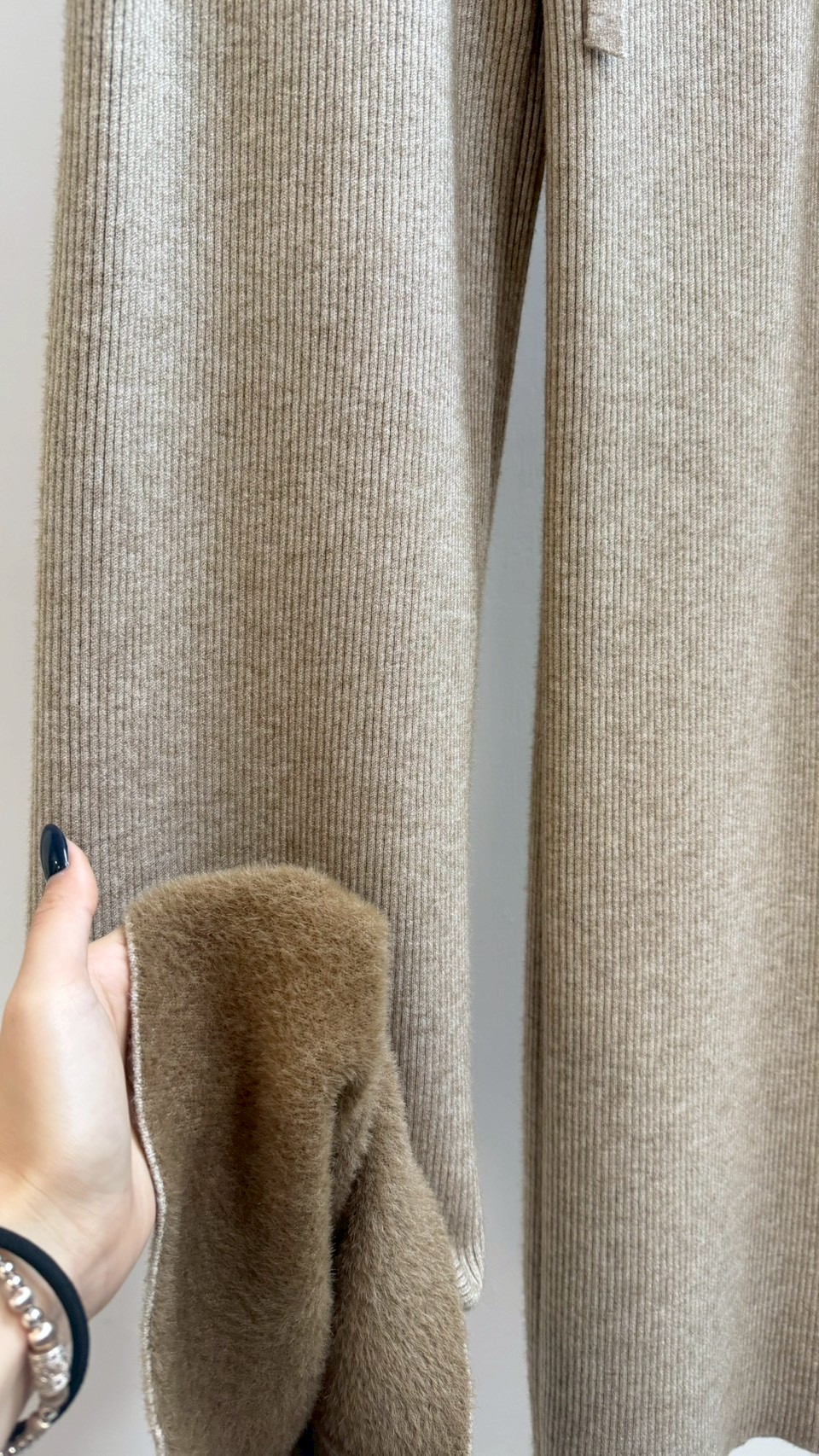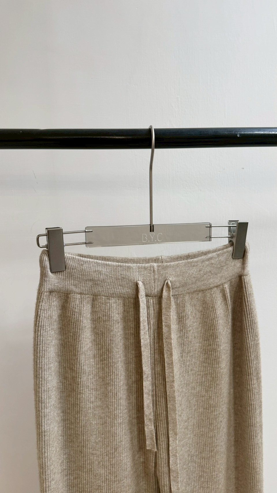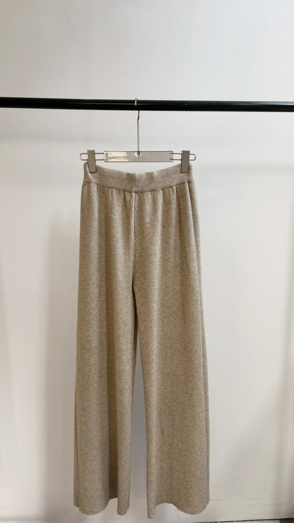 細坑條針織抽繩寬褲 走的是極致簡約的質感路線 擺脫針織褲容易顯胖的困擾,讓下半身線條更俐落。 Color:麥|白