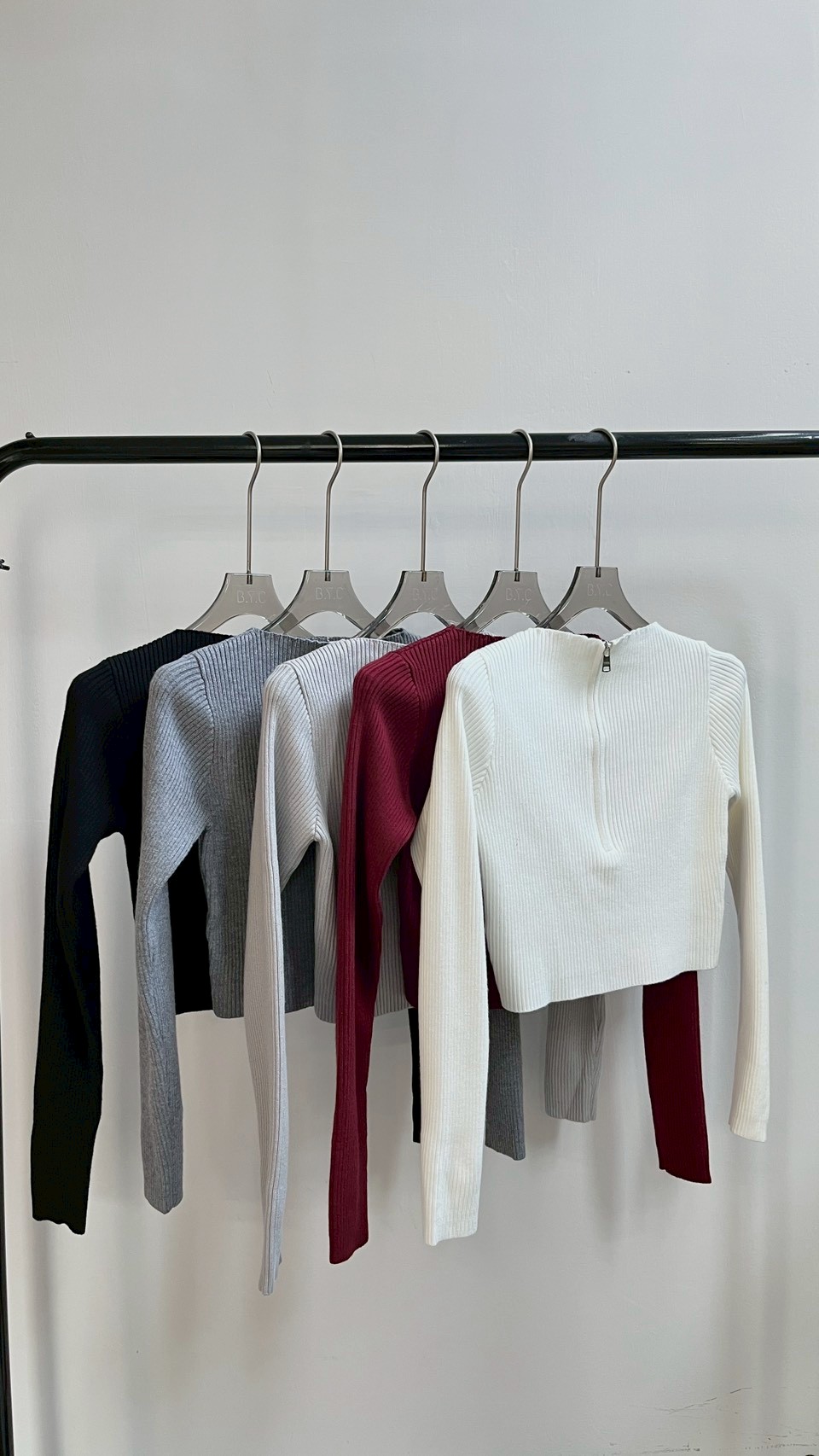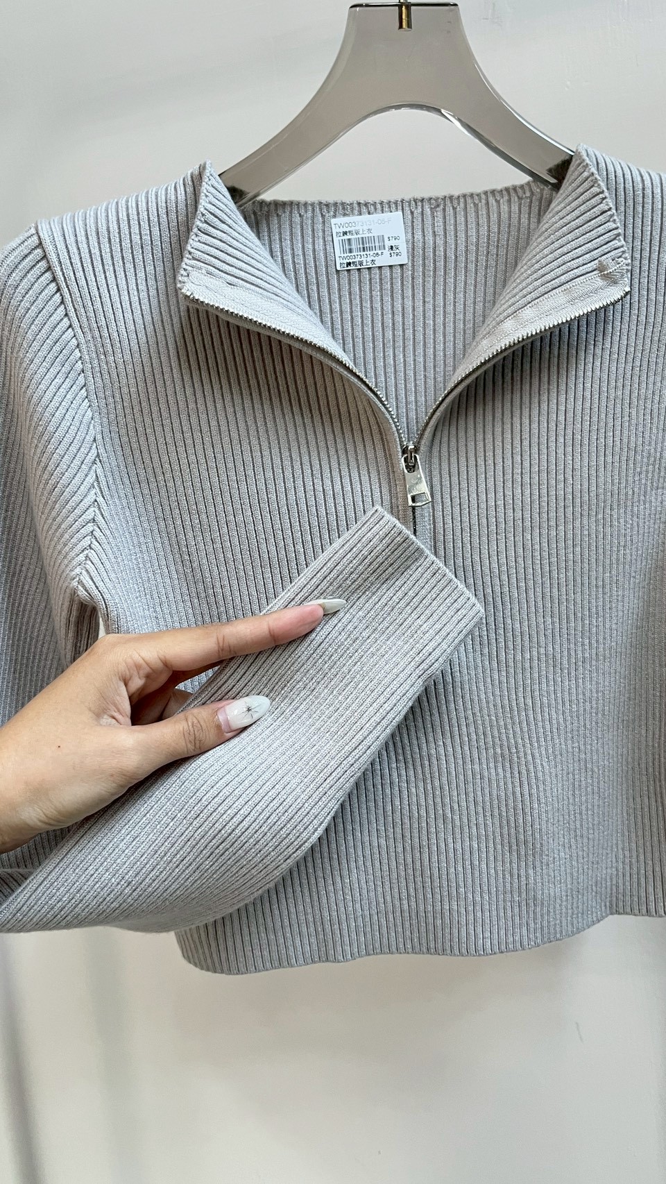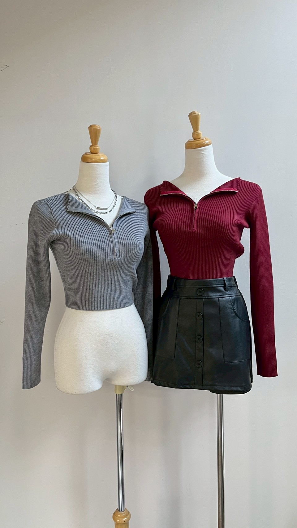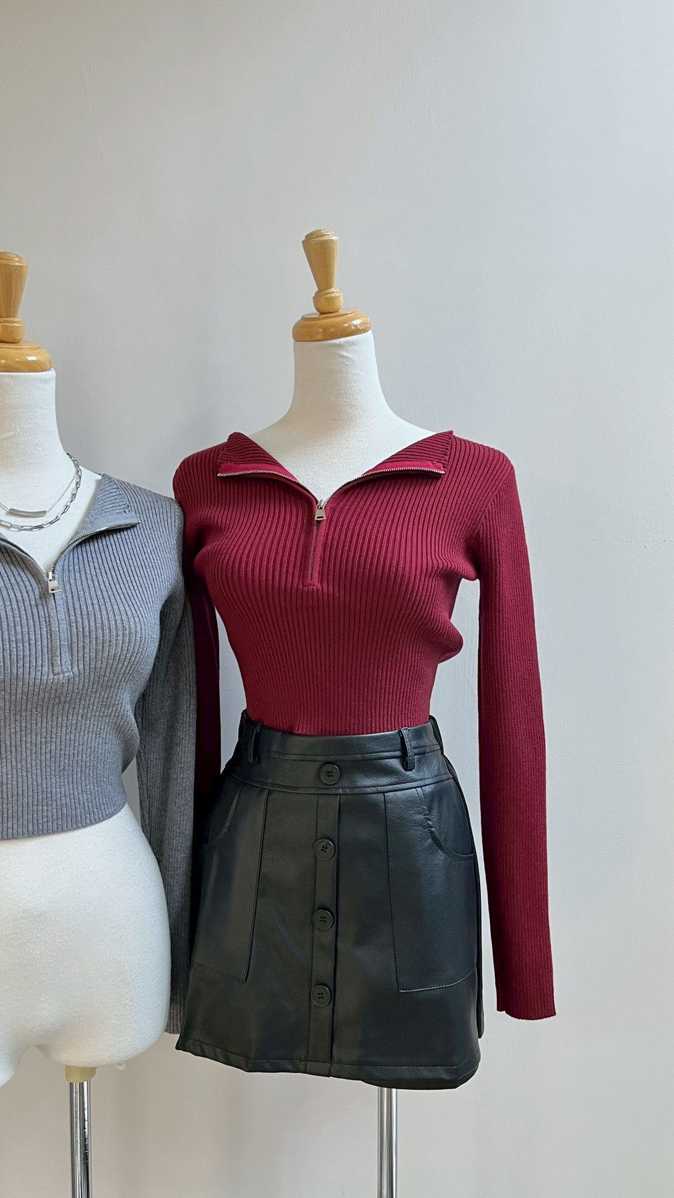 拉鍊設計增加造型亮點~~ **坑條織紋彈力超好 Color : 黑 / 深灰 / 淺灰 / 酒紅 / 白 Size : Free
