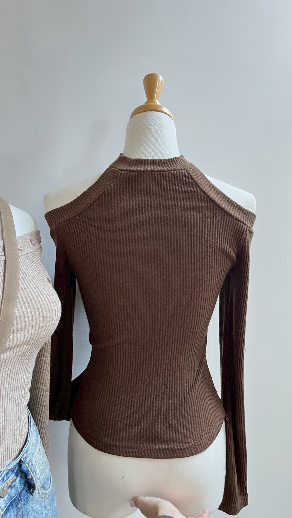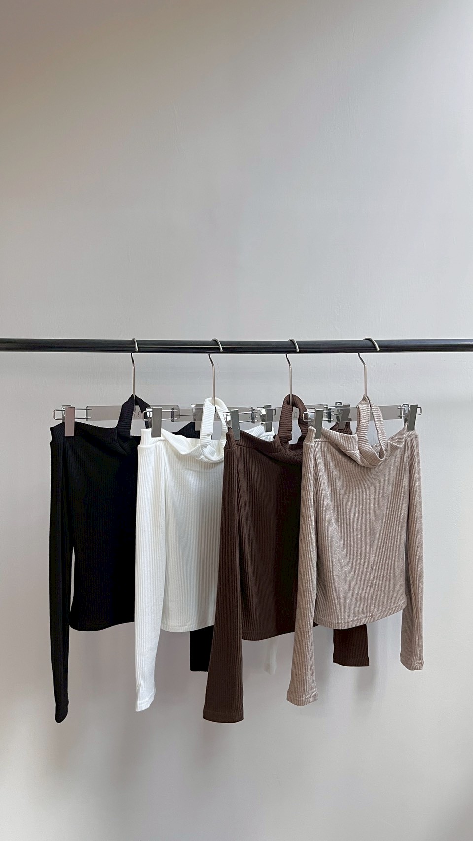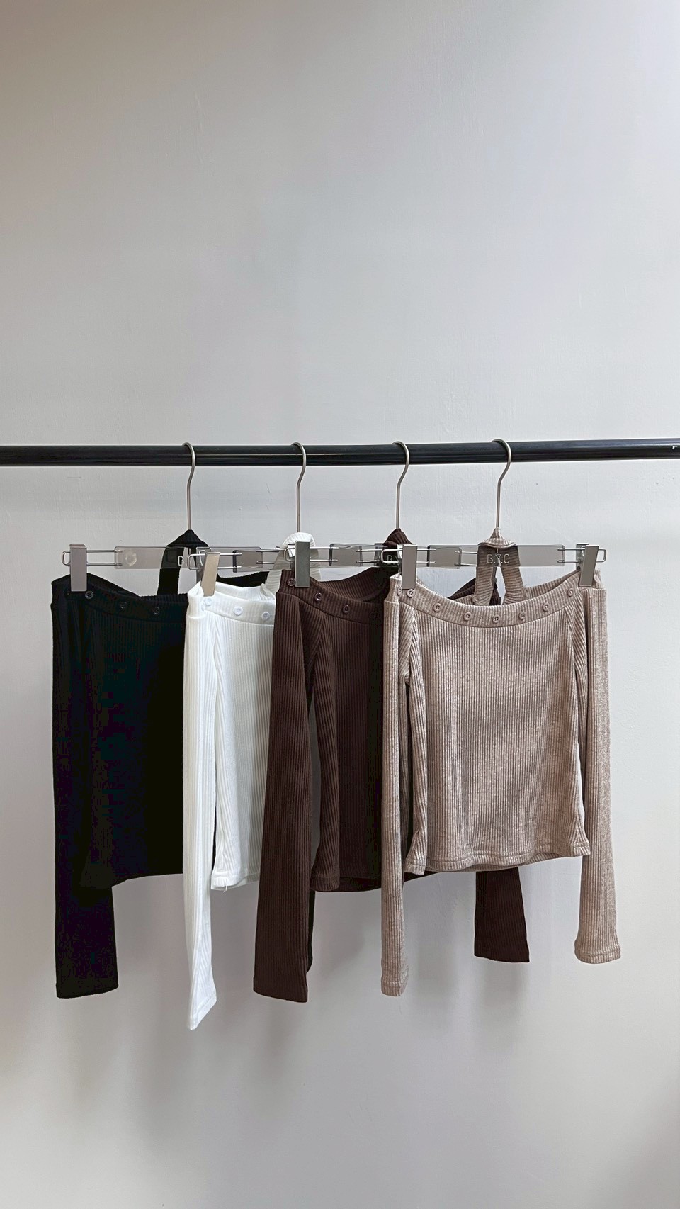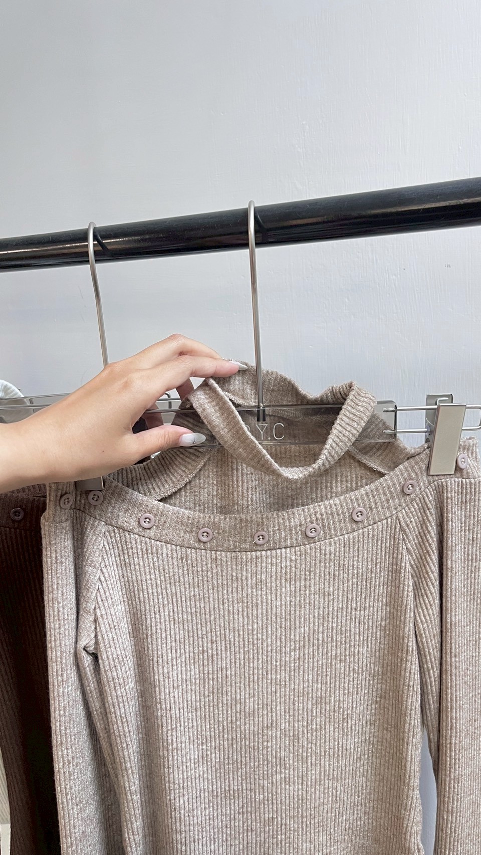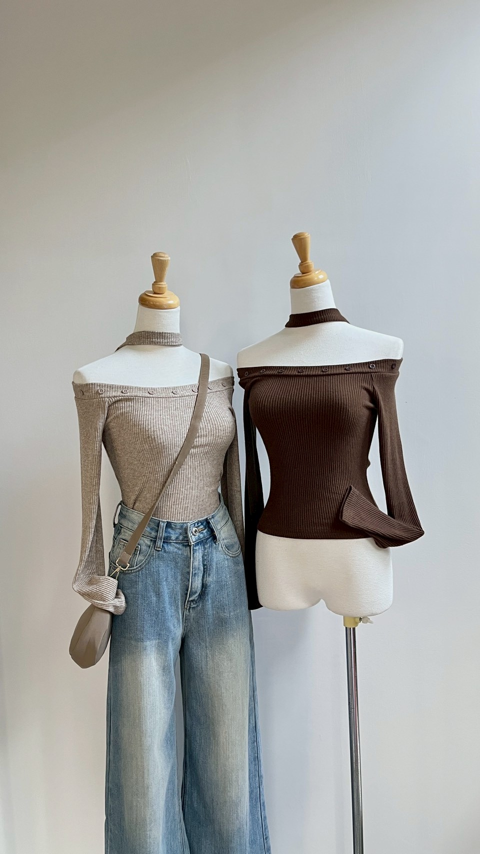 一字領完美展現鎖骨線條,領口的排扣細節精緻又有型。 Color : 黑 / 白 / 咖啡 / 卡其 Size : Free