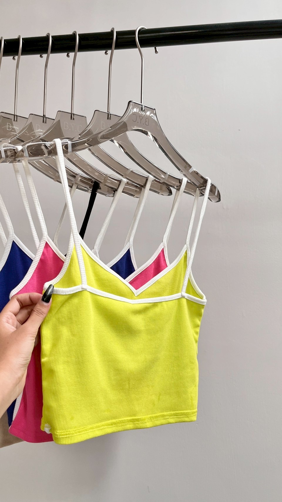 把握最後的末夏小可愛☺️! 知道大家都很愛一些漂亮小背心~ 這款無胸墊輕鬆穿👌🏻各種顏色都有💕💕 很百搭的上衣 誰穿都好看啦🫶🏻 Color:黑|白| 奶茶| 深藍| 桃粉| 螢光綠 Size : Free