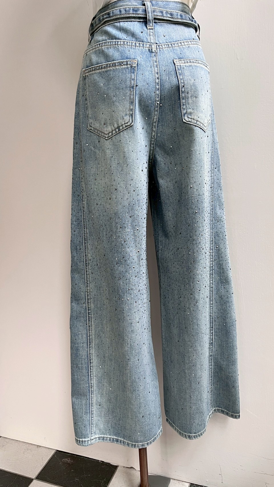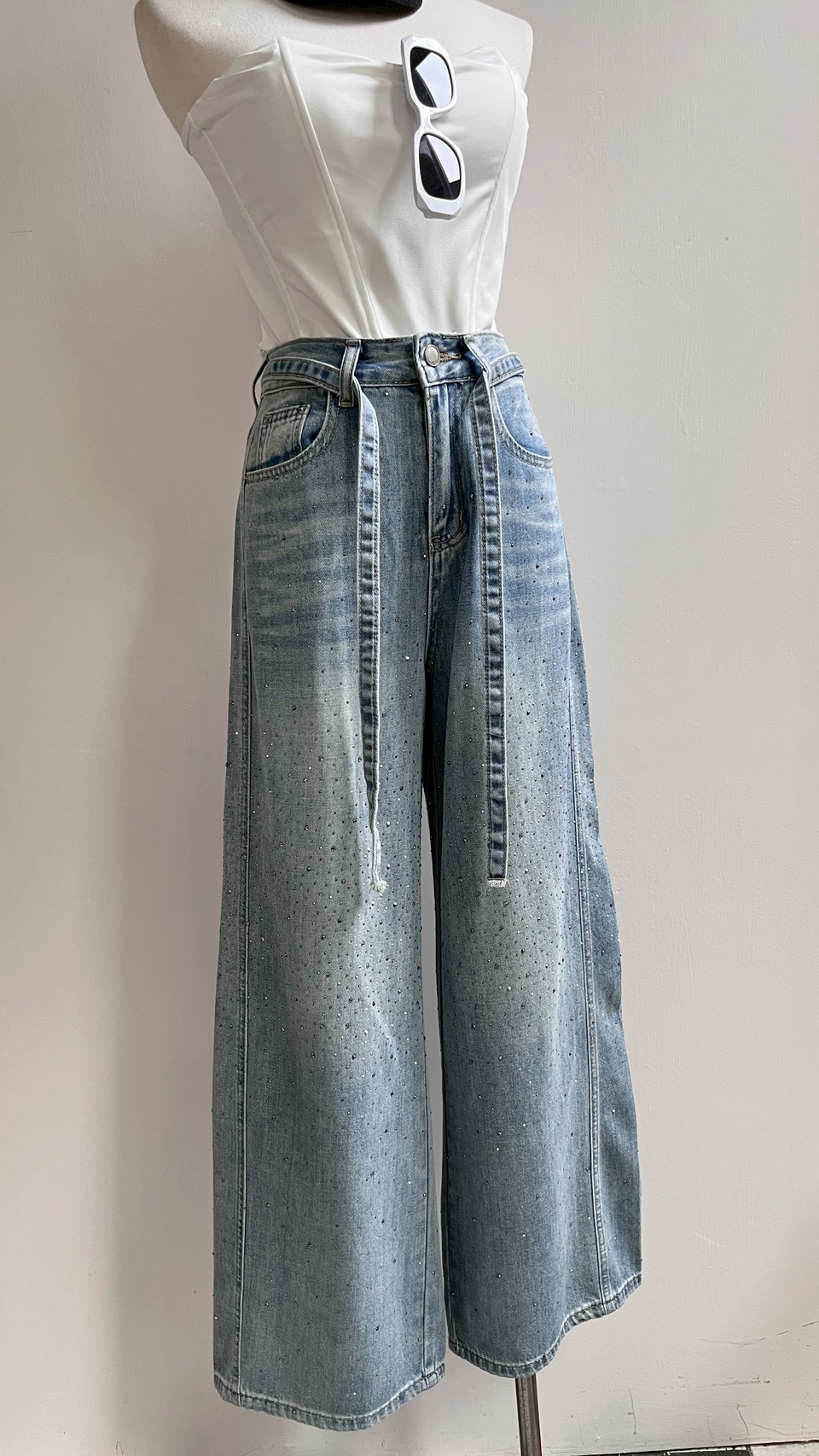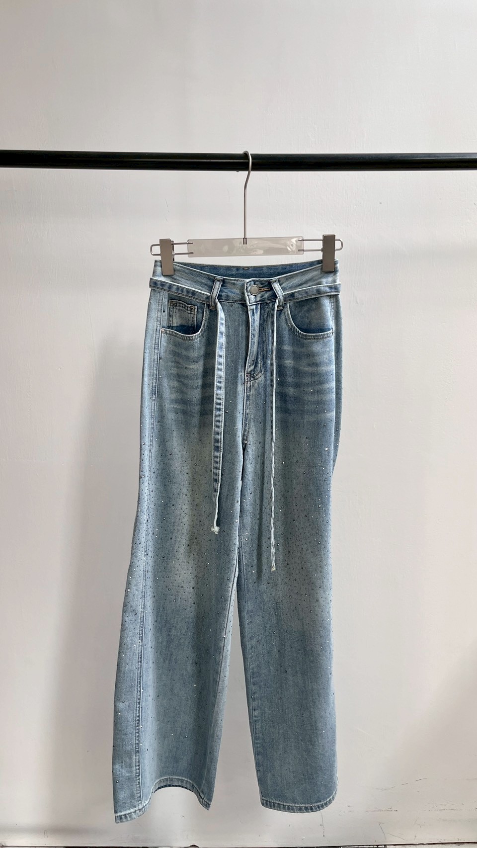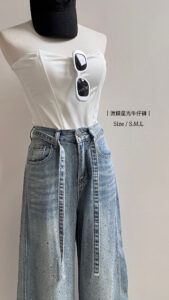 超美的閃鑽細節,版型夠正的一件落地褲! Size : S / M / L