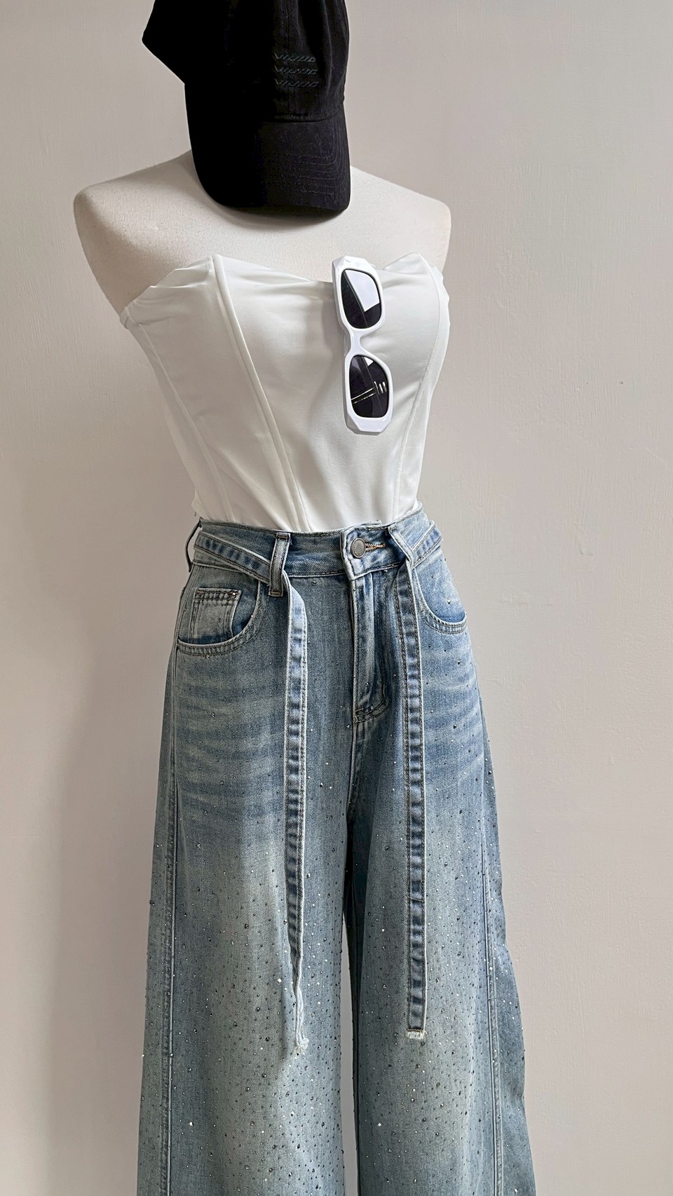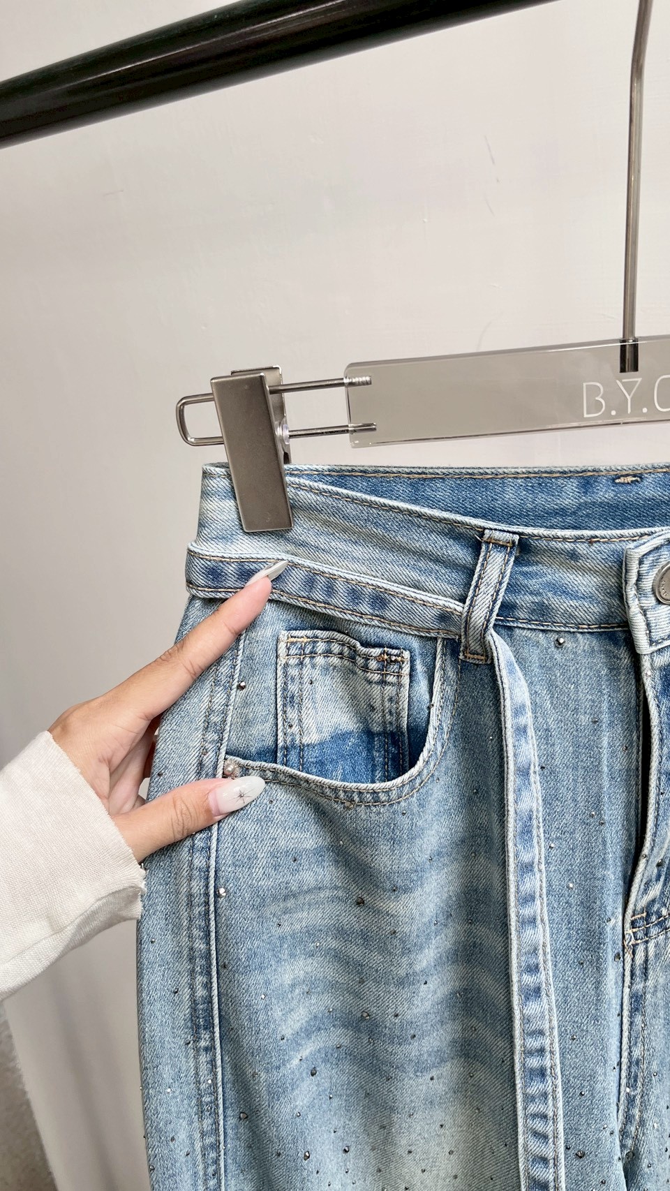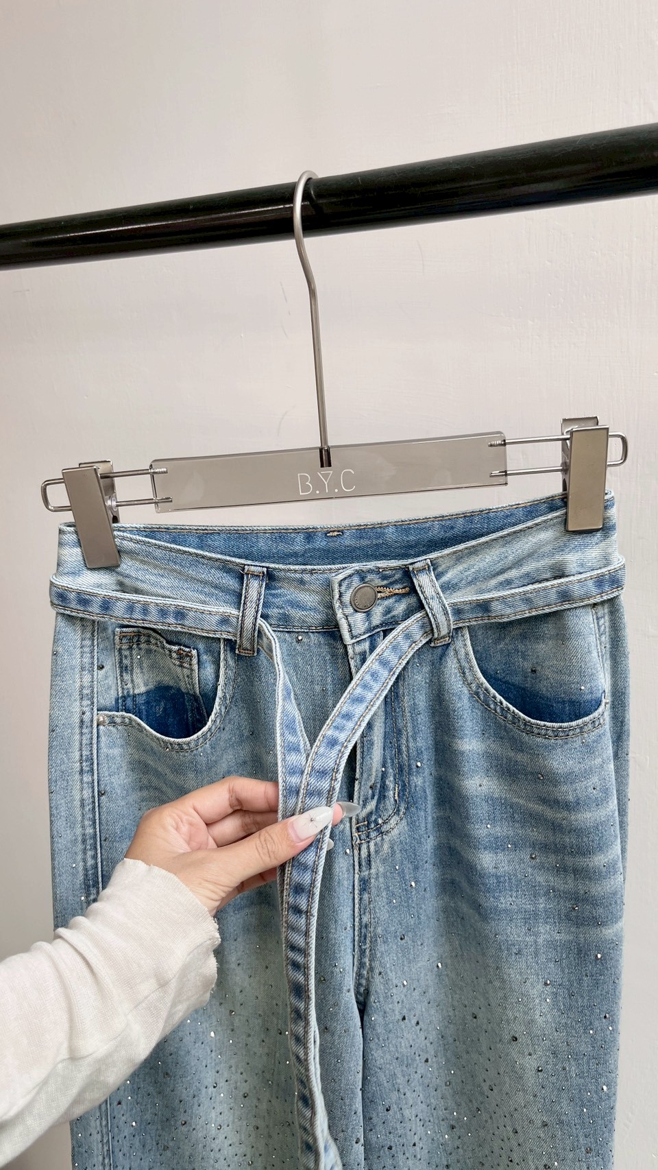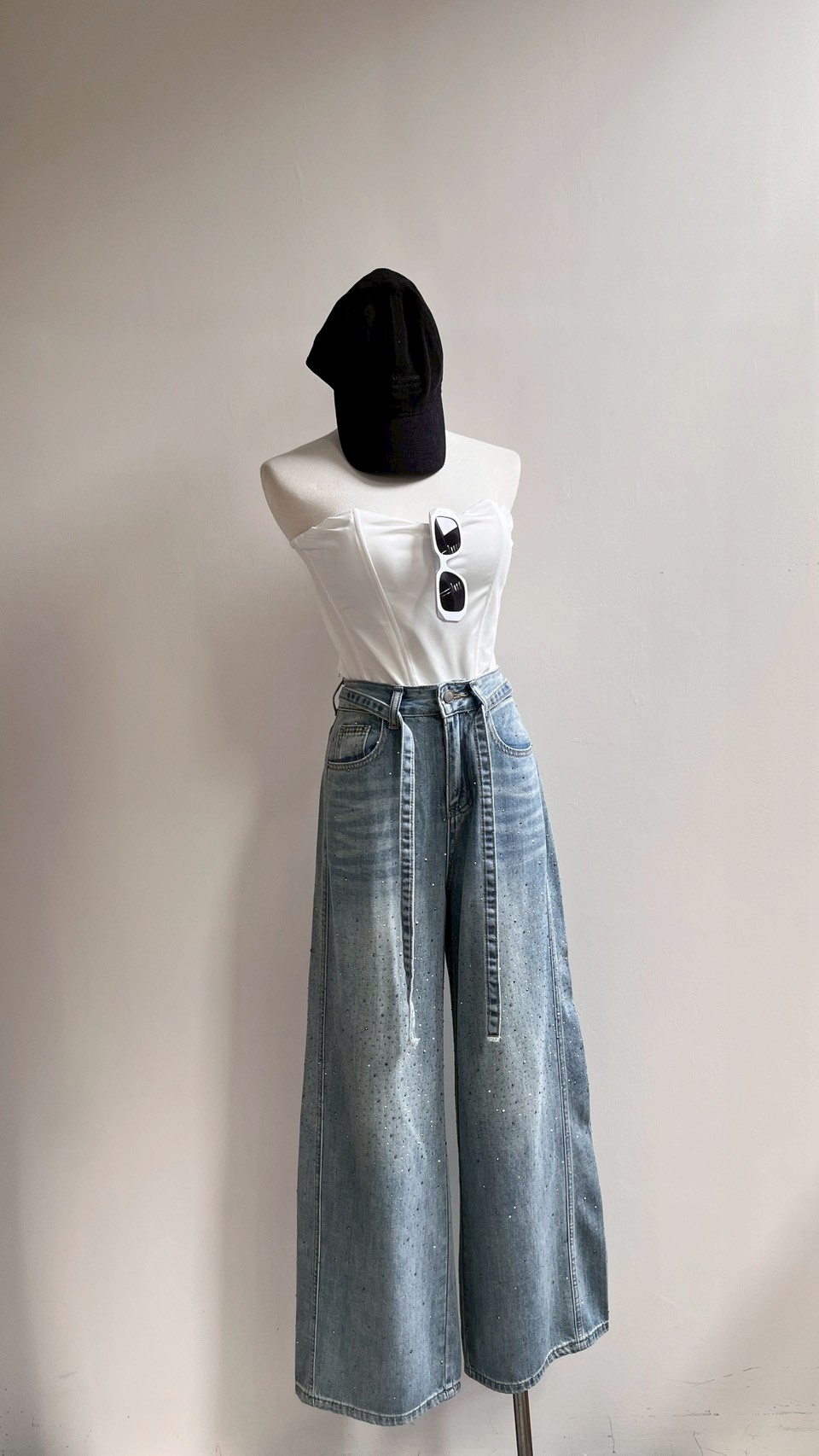 超美的閃鑽細節,版型夠正的一件落地褲! Size : S / M / L