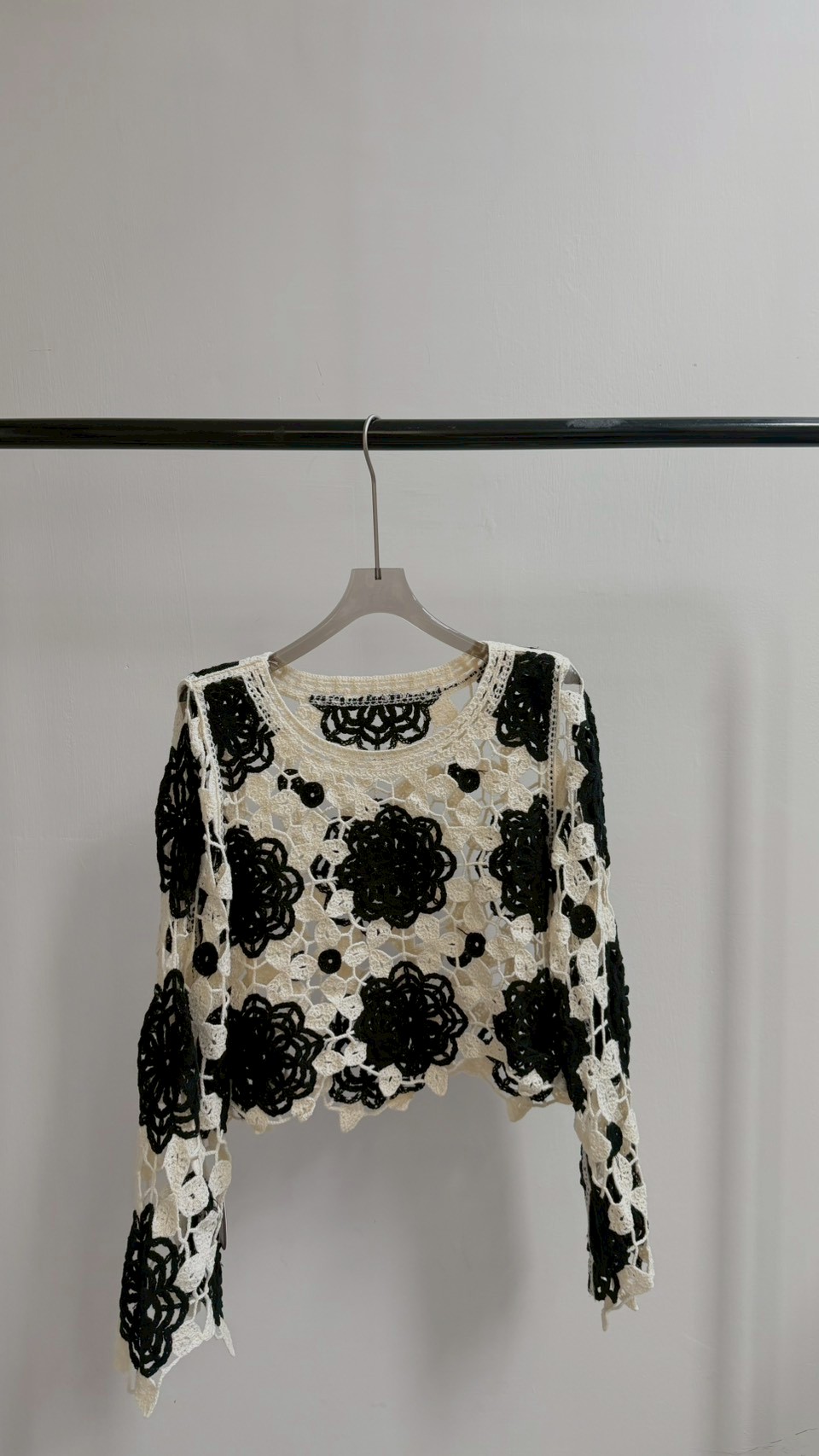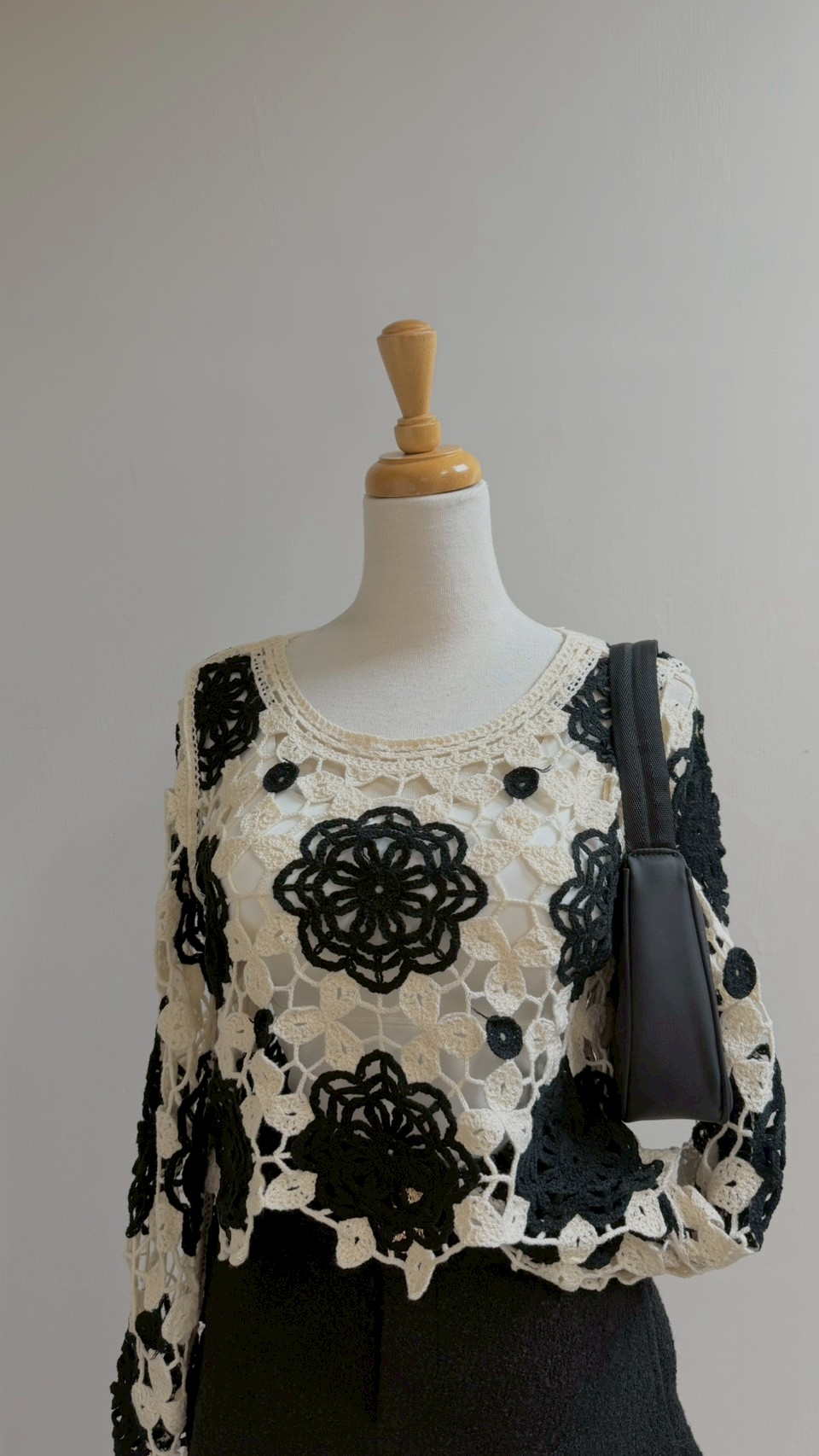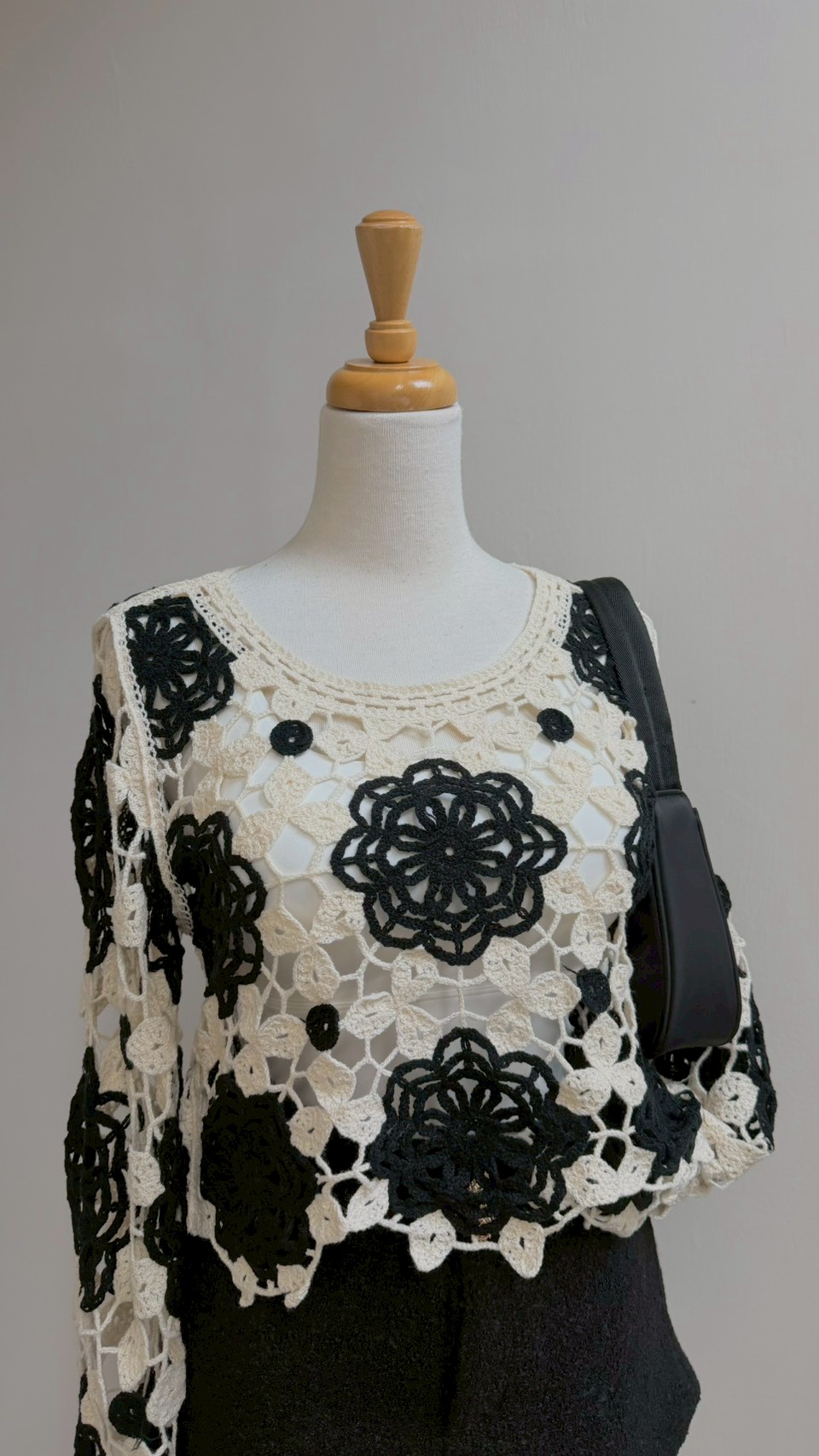這款真的充滿藝術感! 純手工質感的鏤空花卉圖案 ✨ 黑白撞色經典又耐看,內搭小可愛層次感太美了 Size :FREE