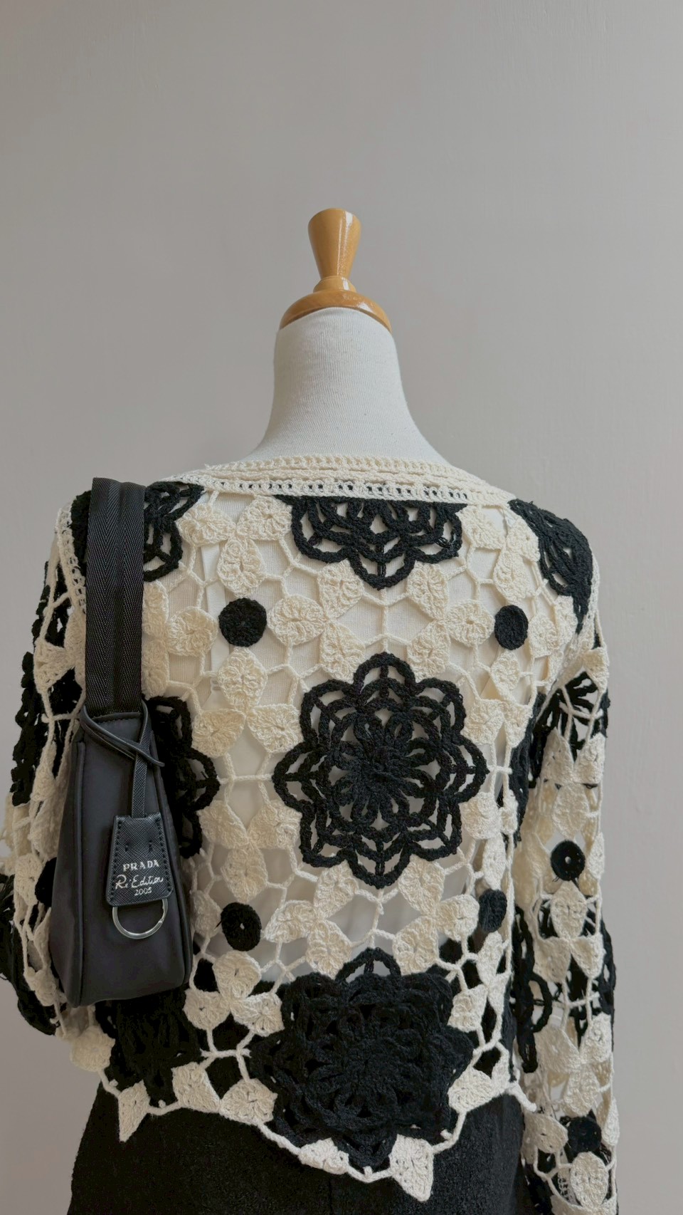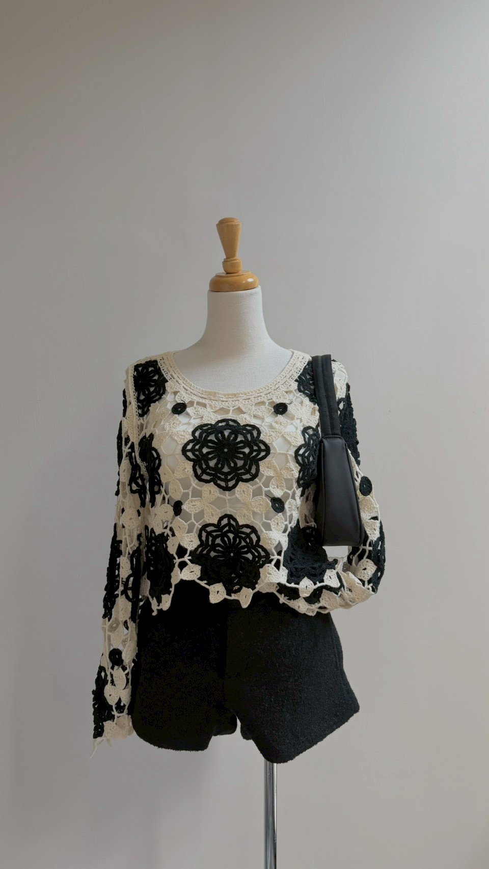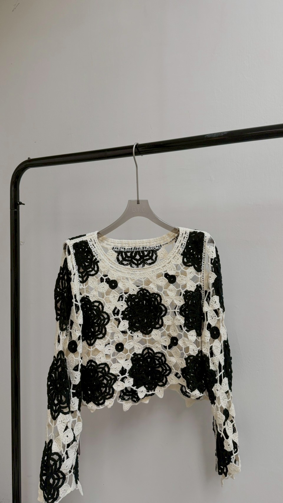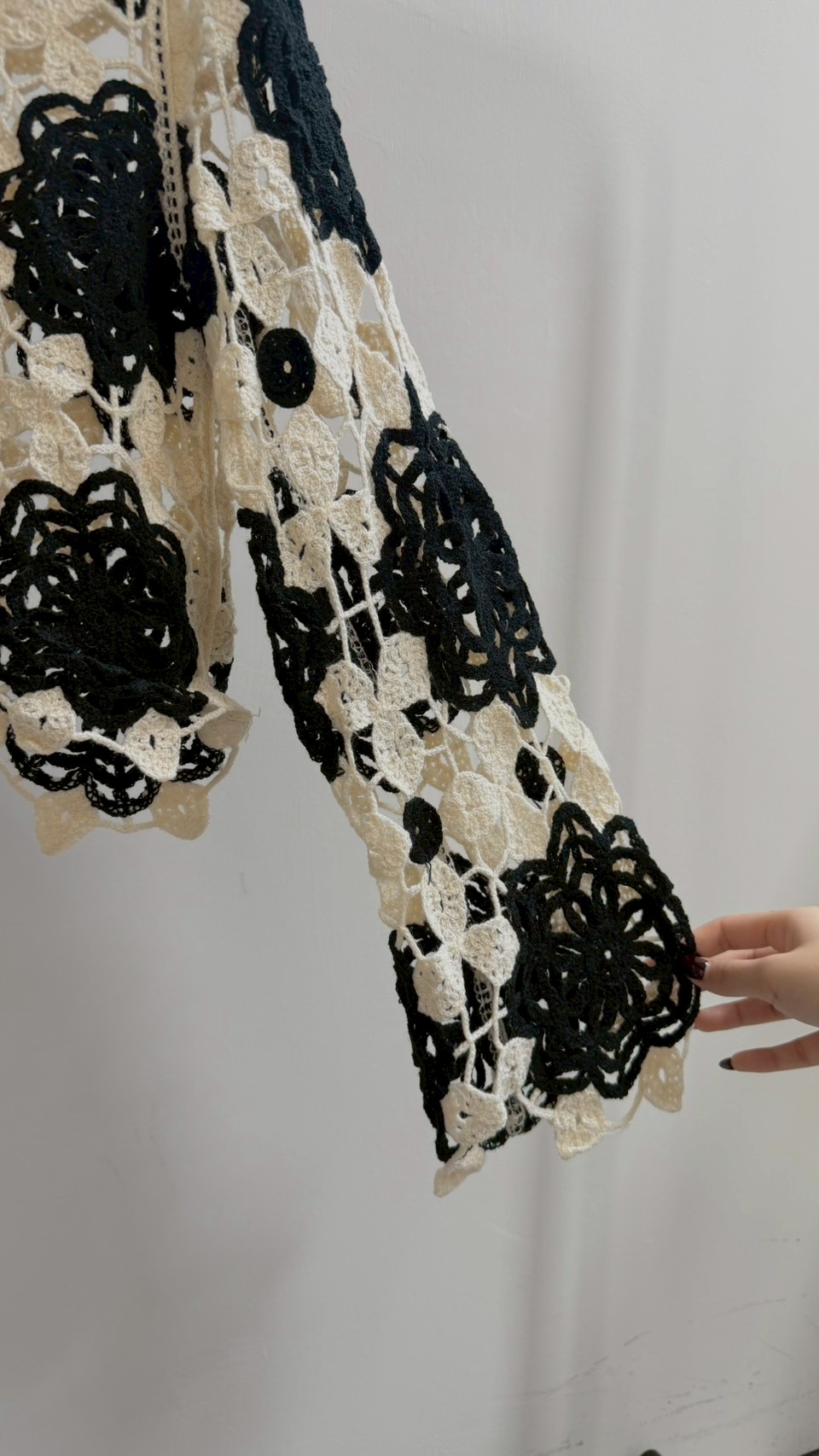 這款真的充滿藝術感! 純手工質感的鏤空花卉圖案 ✨ 黑白撞色經典又耐看,內搭小可愛層次感太美了 Size :FREE
