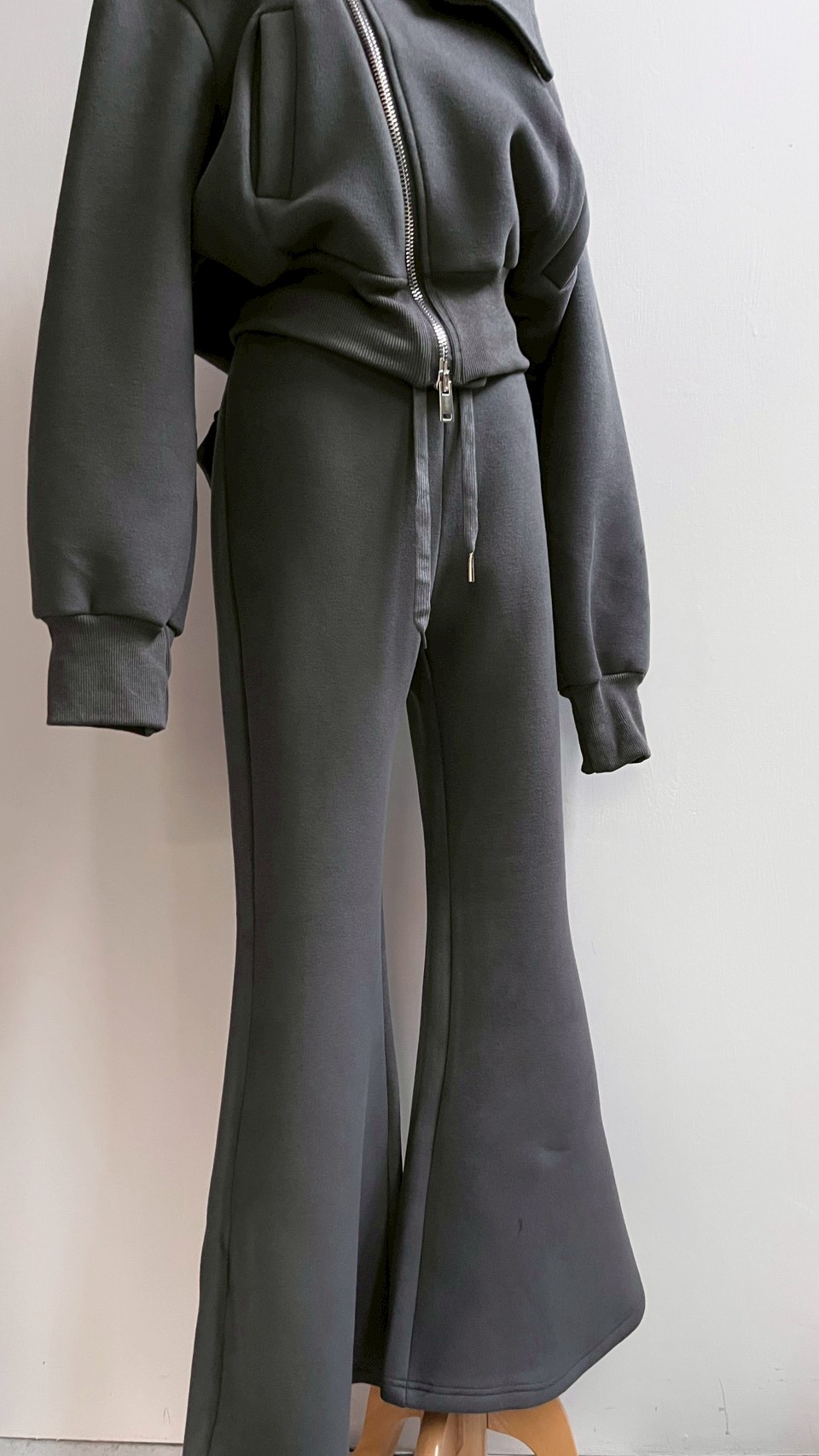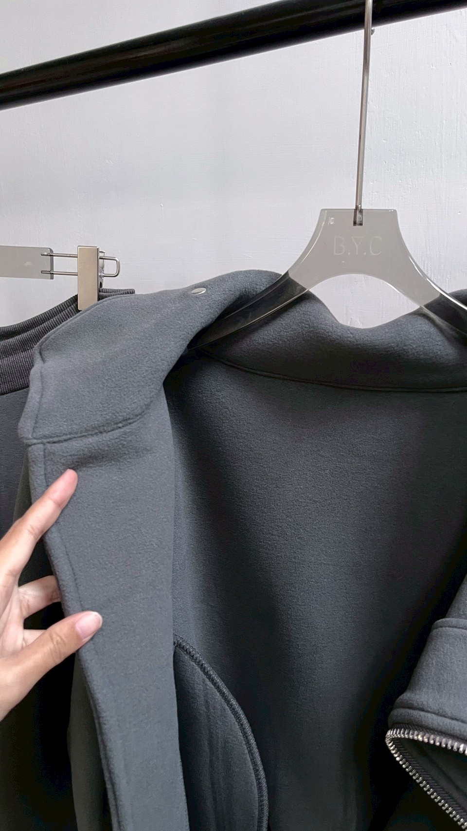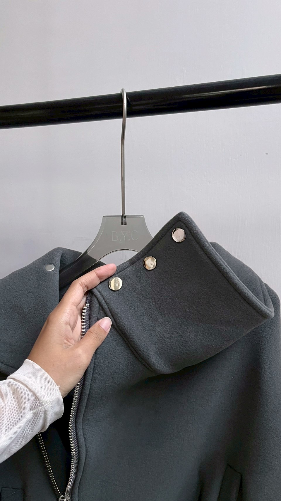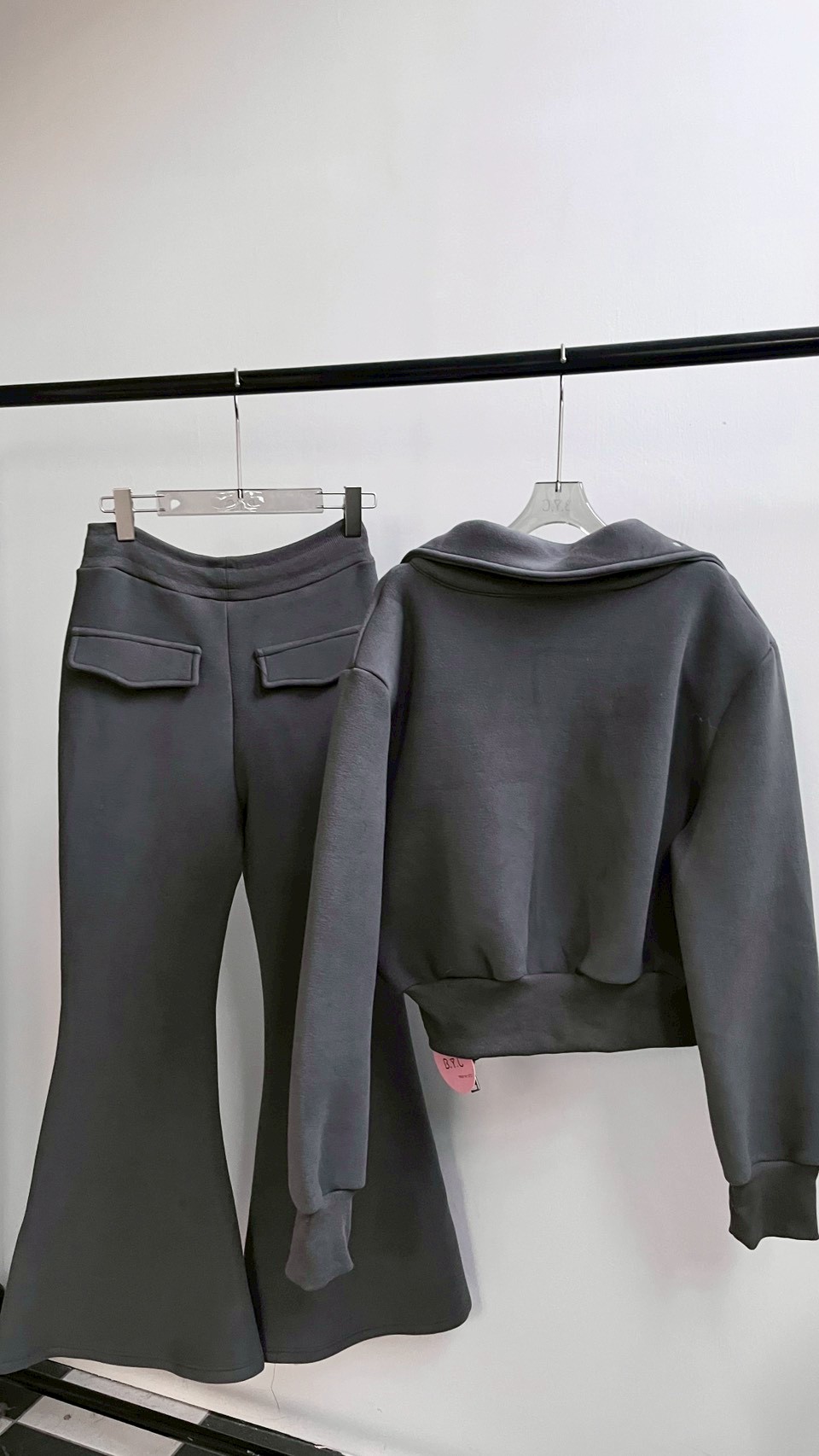 誰說休閒服只能樸素? 這套運用大膽的斜拉鍊、立體翻領設計 讓妳即使穿運動服也能成為街頭焦點! Color:碳灰 Size : Free