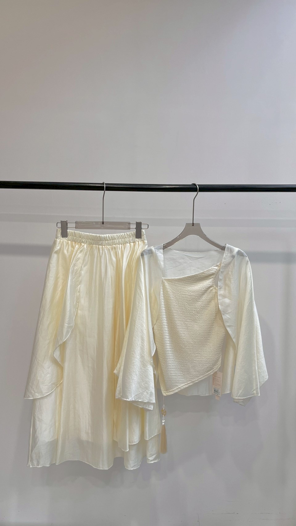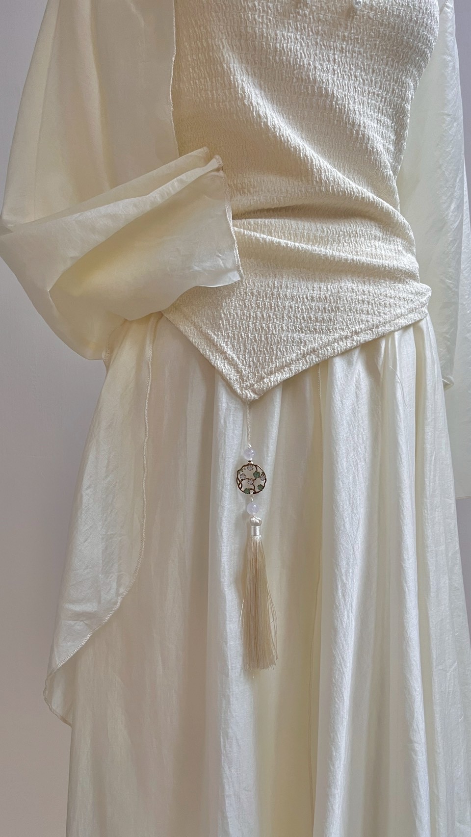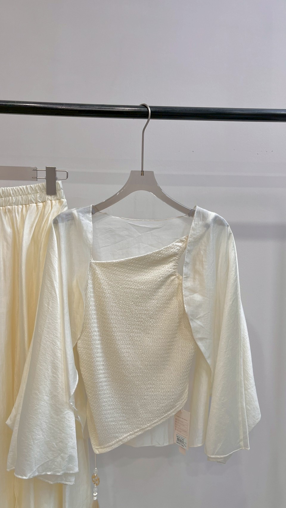 輕薄雪紡紗與歐根紗面料,打造多層次的夢幻視覺效果。 中式禪意美學的微古風套裝 Color:混色 Size : Free