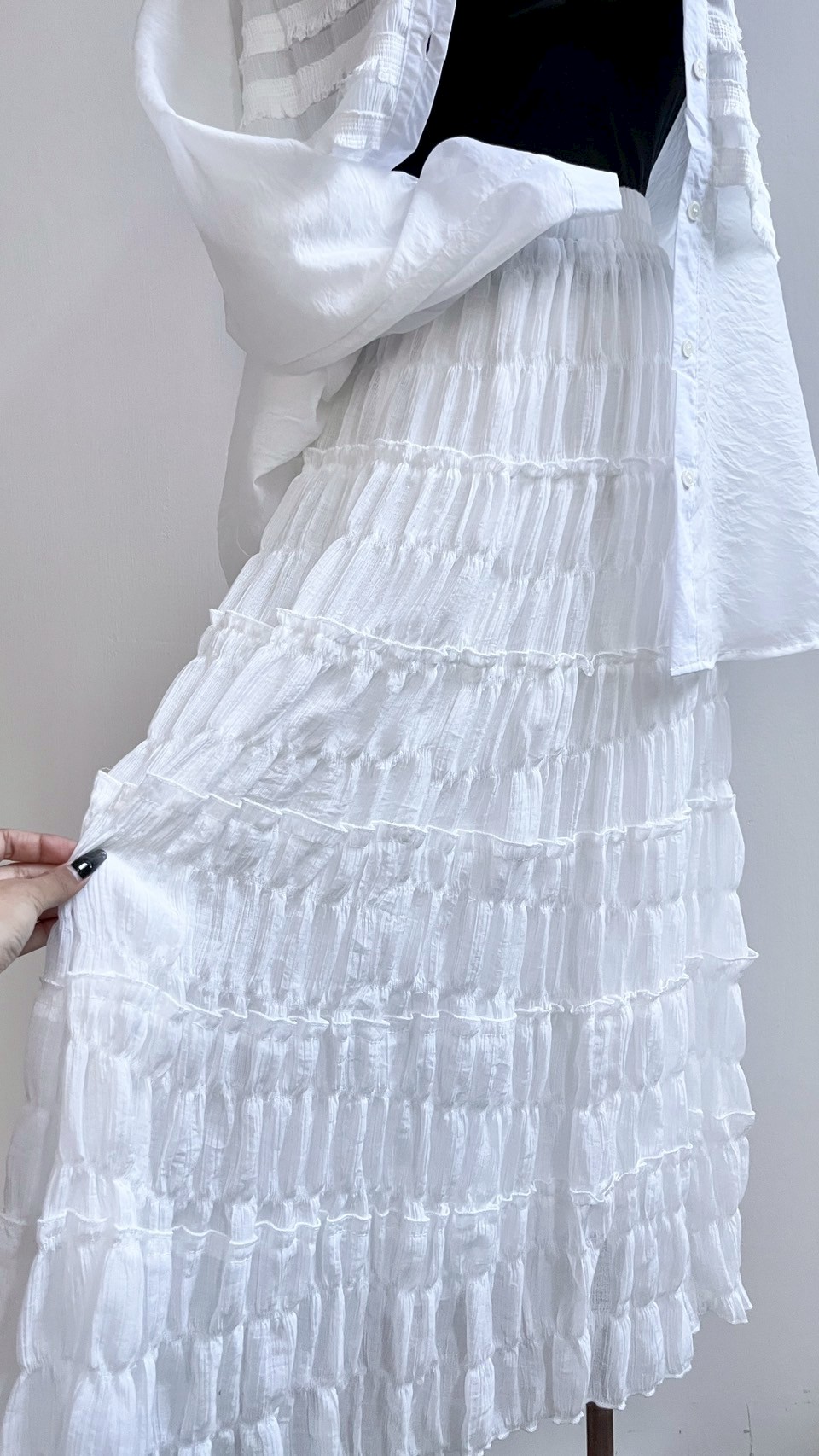 仙氣感拉滿~~蕾絲層次白長裙 Color:白色 Size : Free