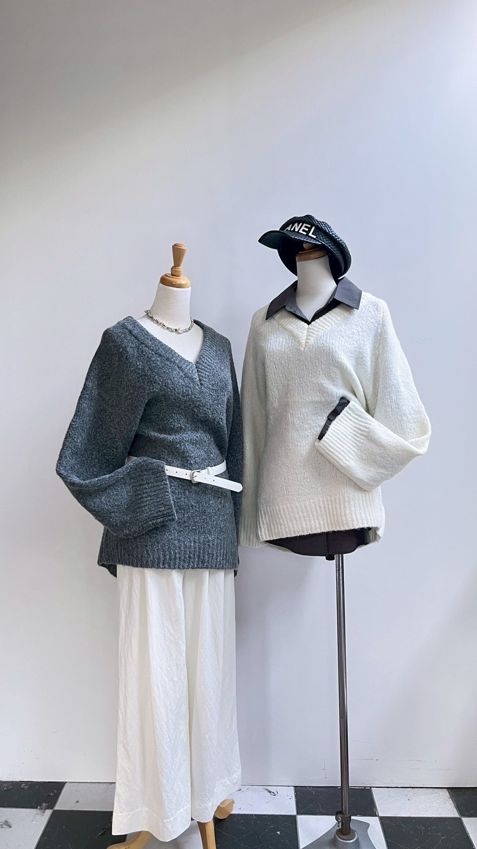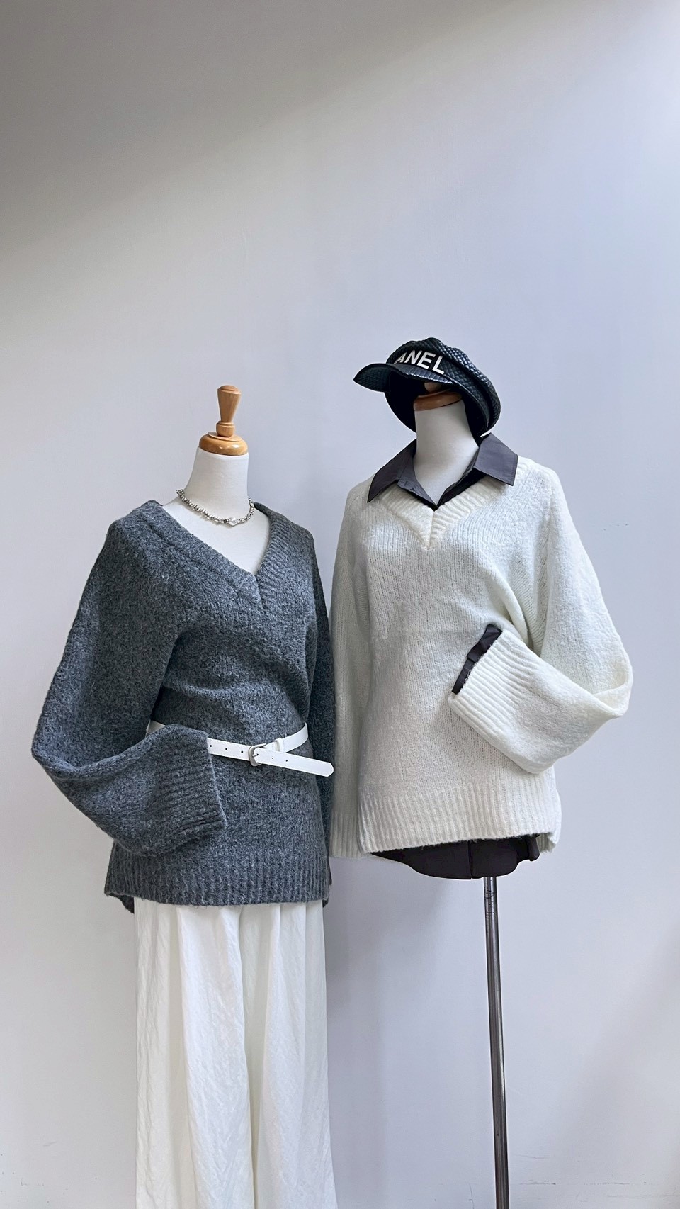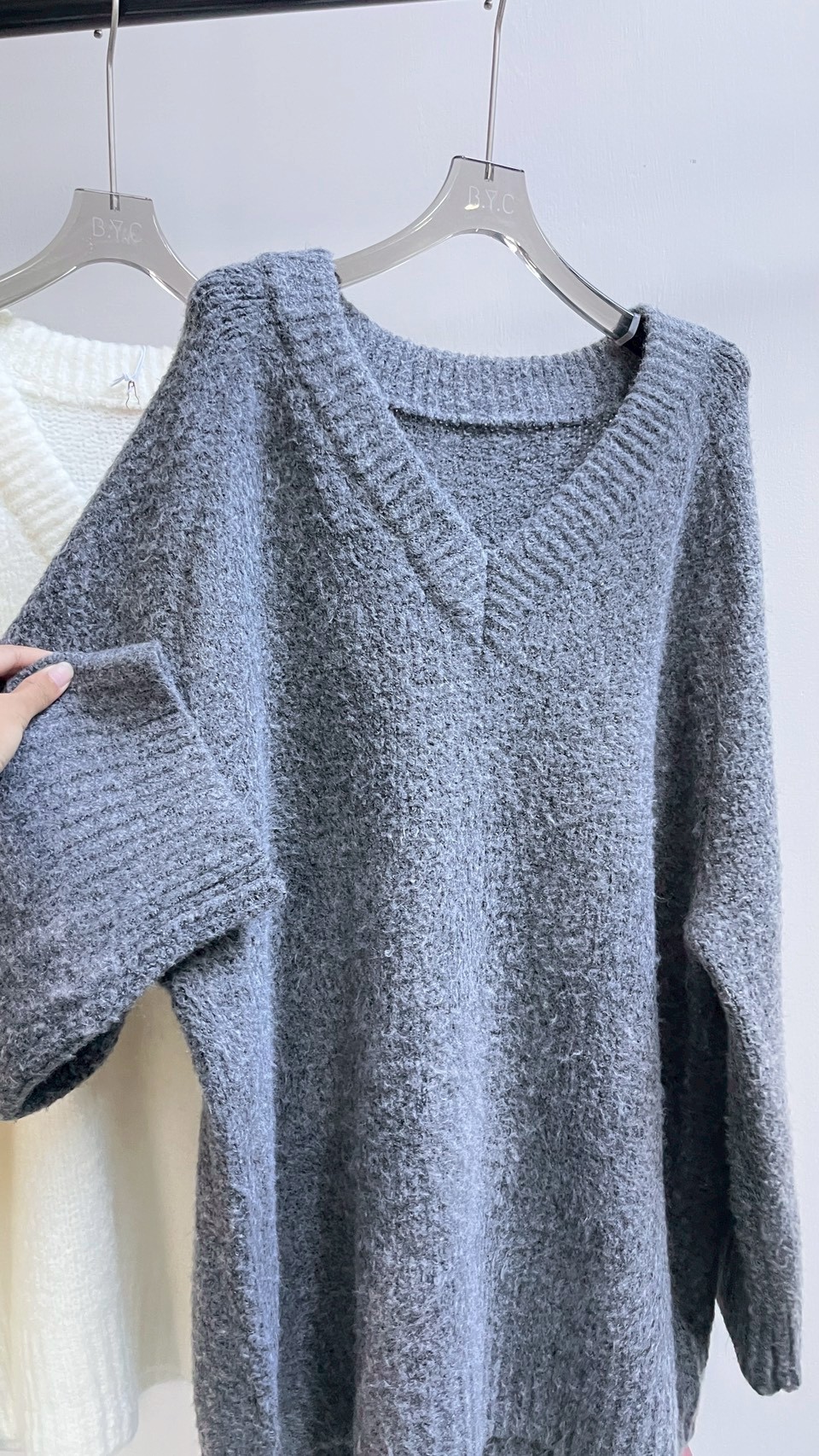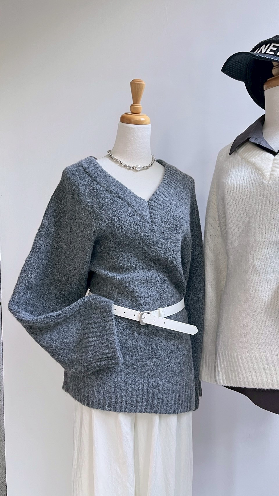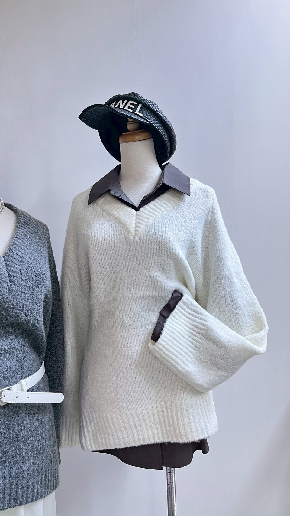 百搭的 V 領寬鬆針織🤍 > > 內搭襯衫 學院風自然成形 > > 單穿搭配皮帶 微露鎖骨與肩頸線條 —— 是那種不費力的鬆弛時尚感 𝑠𝑜𝑓𝑡, 𝑟𝑒𝑙𝑎𝑥𝑒𝑑, 𝑡𝑖𝑚𝑒𝑙𝑒𝑠𝑠 Color:灰|白 Size : Free