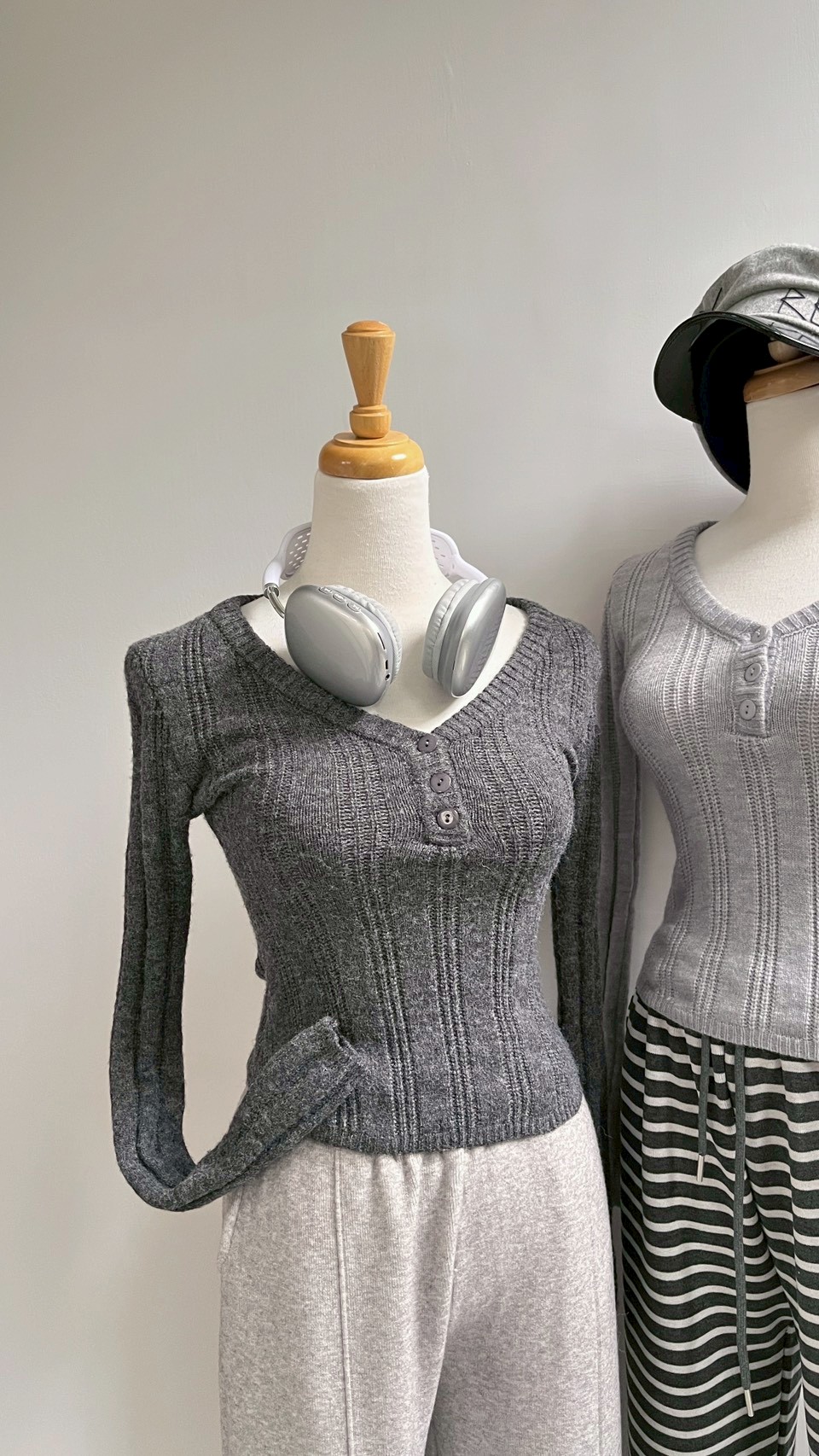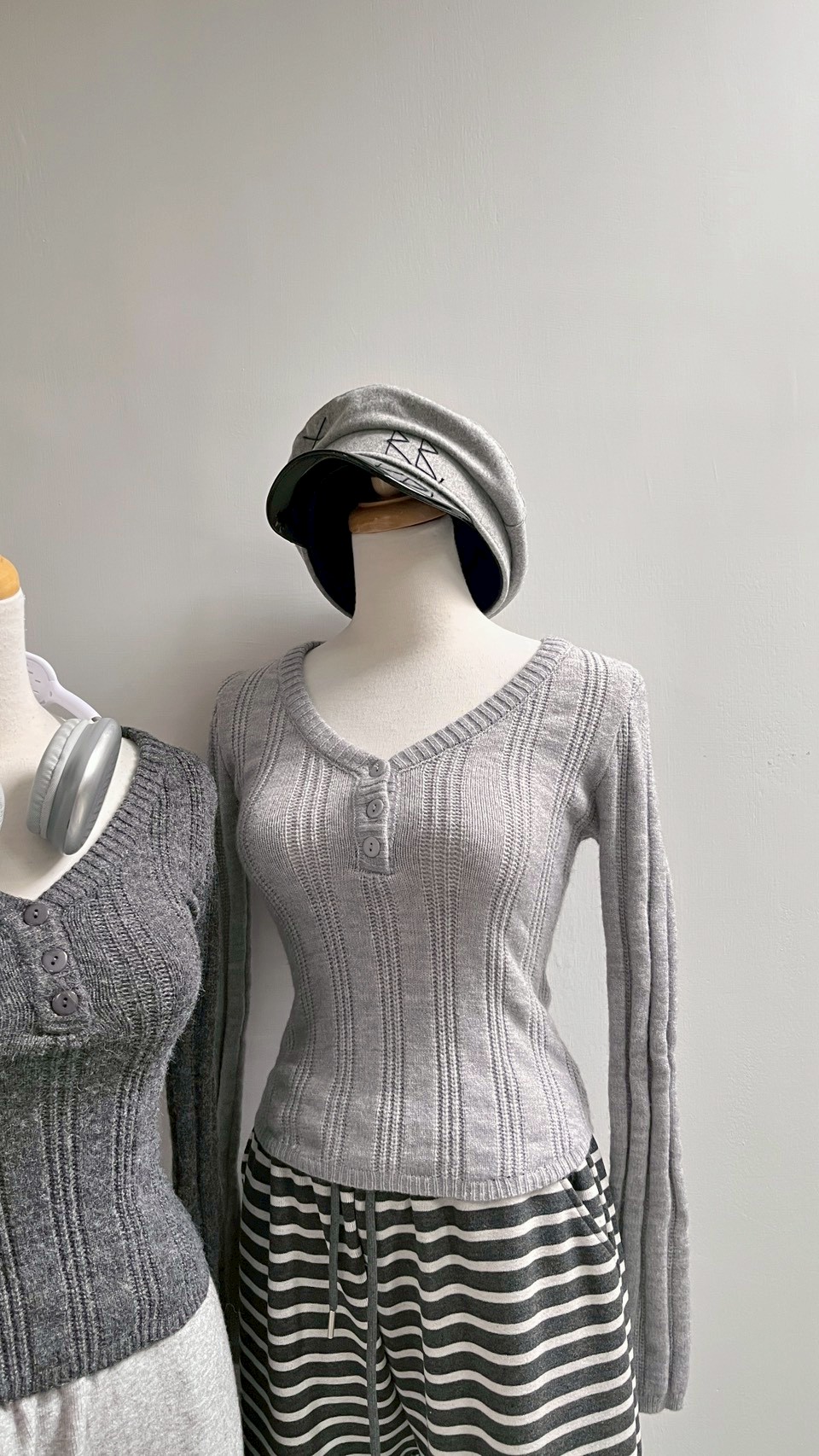 V領鈕扣針織上衣